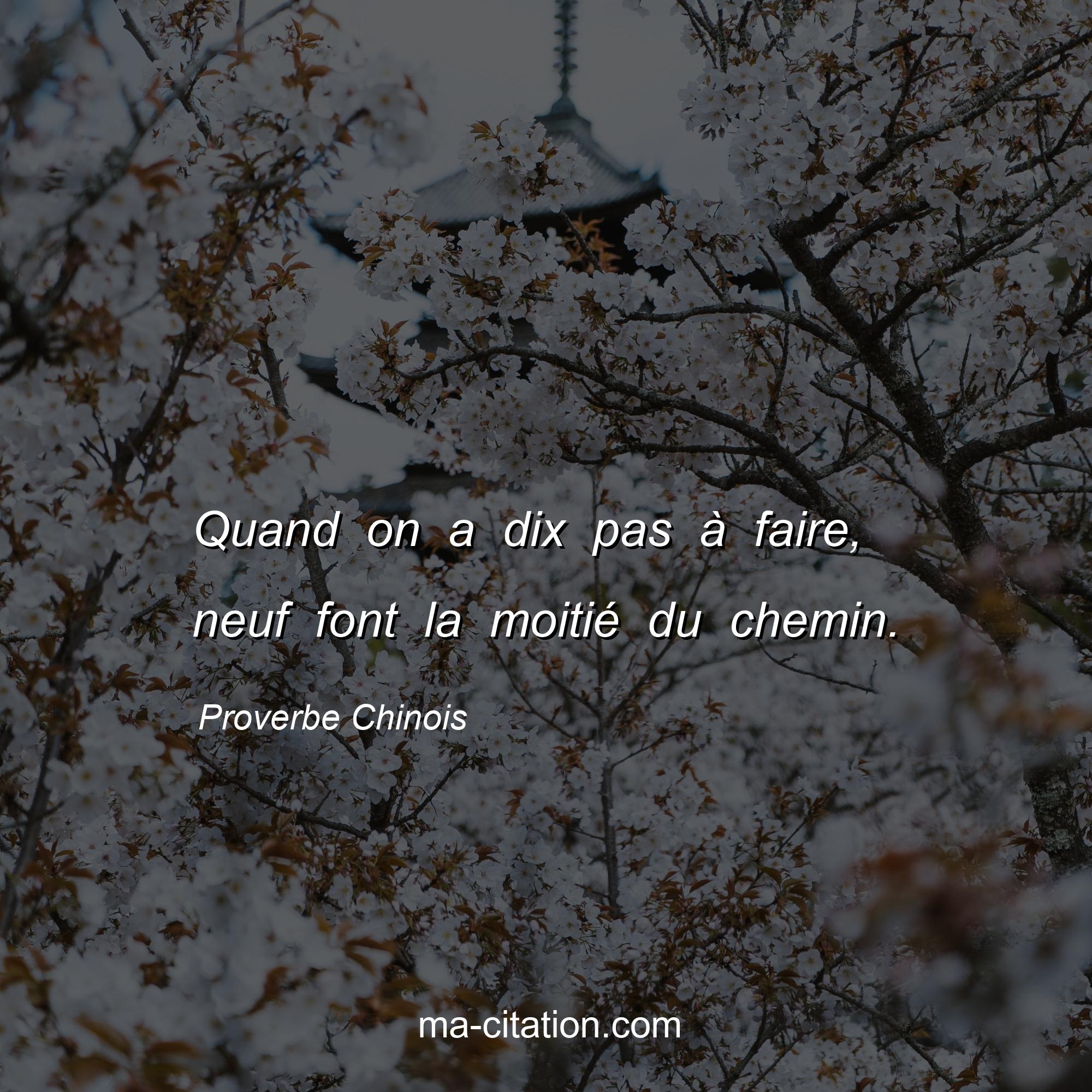 Proverbe Chinois sur la vie :Quand on a dix pas à faire, neuf font la moitié du chemin.