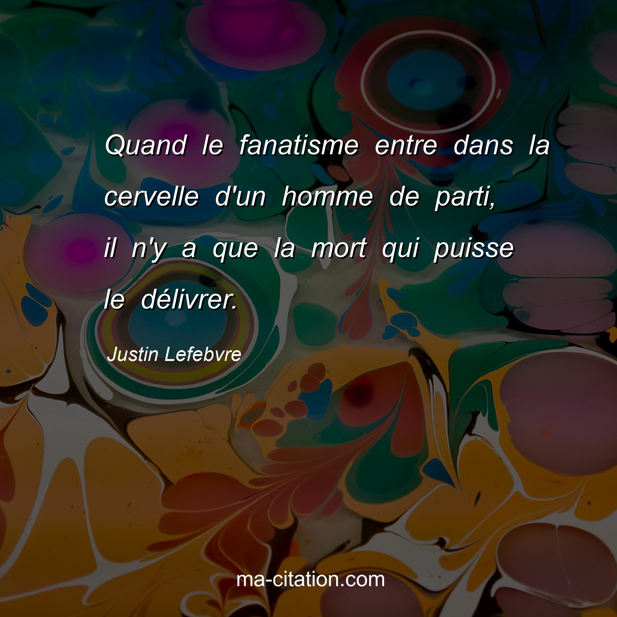 Justin Lefebvre est l'auteur de la citation sur la vie "Quand le fanatisme entre dans la cervelle d'un homme de parti, il n'y a que la mort qui puisse le délivrer.".