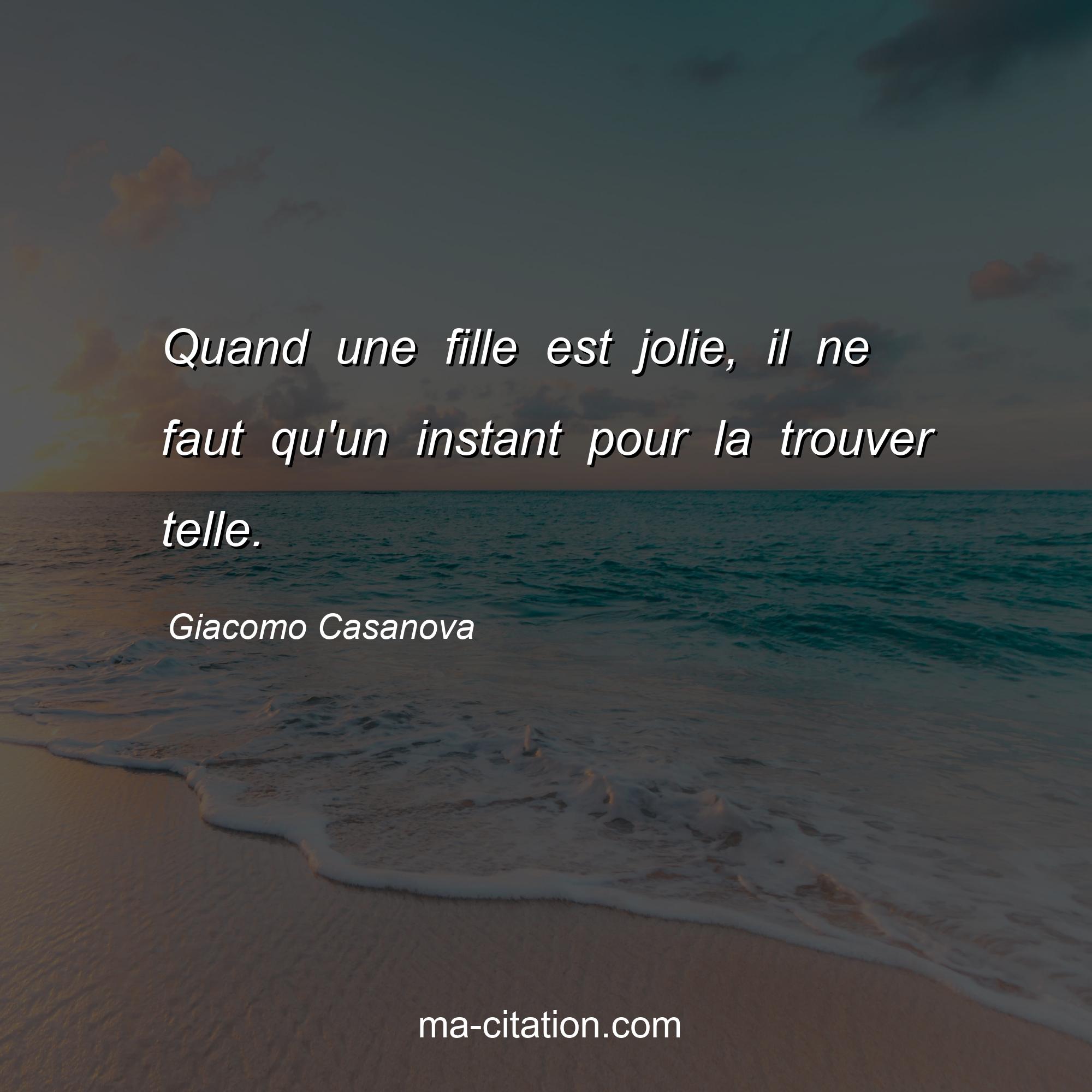 Citation sur la vie de Giacomo Casanova :Quand une fille est jolie, il ne faut qu'un instant pour la trouver telle.