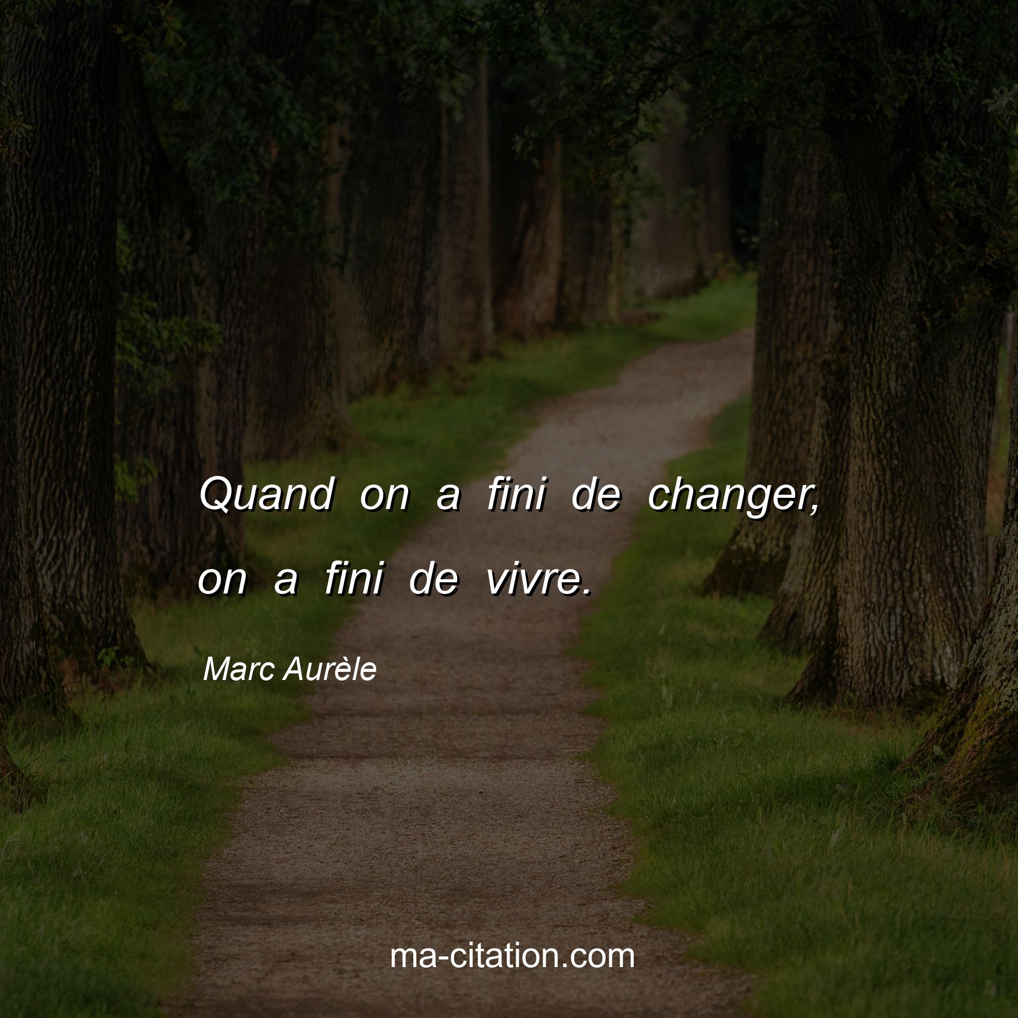 Marc Aurèle est l'auteur de la citation sur la vie "Quand on a fini de changer, on a fini de vivre.".