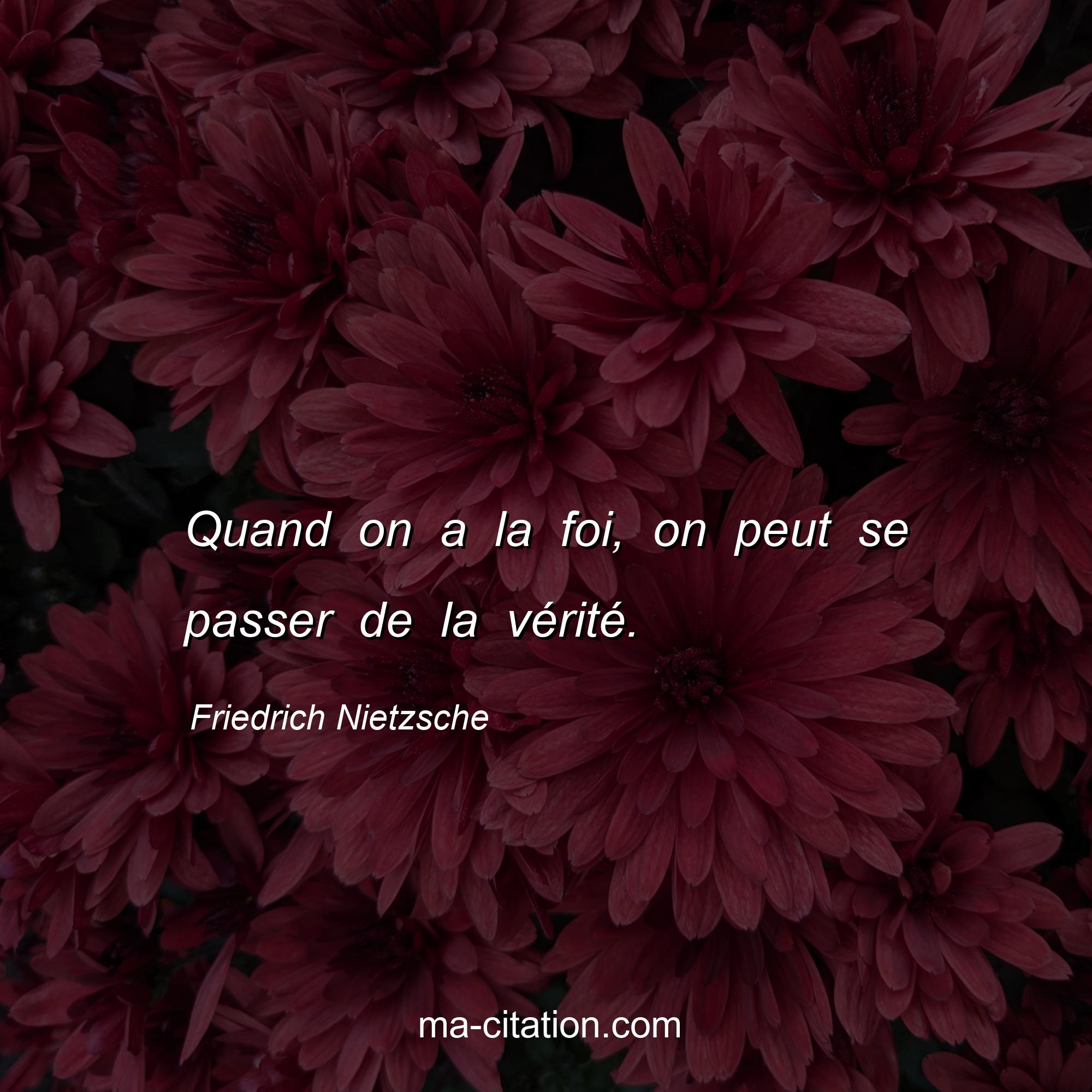 Citation sur la vie de Friedrich Nietzsche :Quand on a la foi, on peut se passer de la vérité.