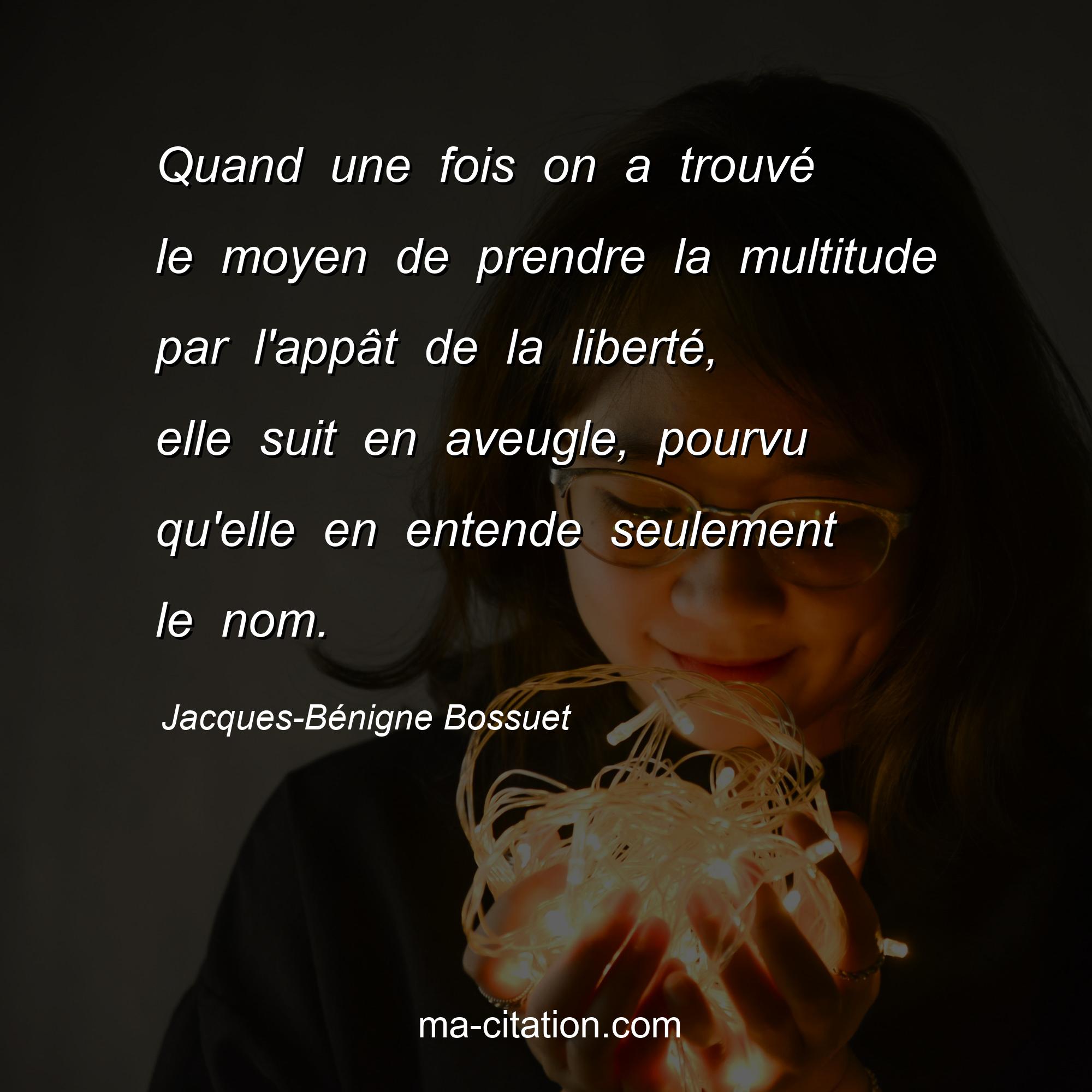 Citation sur la vie de Jacques-Bénigne Bossuet :Quand une fois on a trouvé le moyen de prendre la multitude par l'appât de la liberté, elle suit en aveugle, pourvu qu'elle en entende seulement le nom.