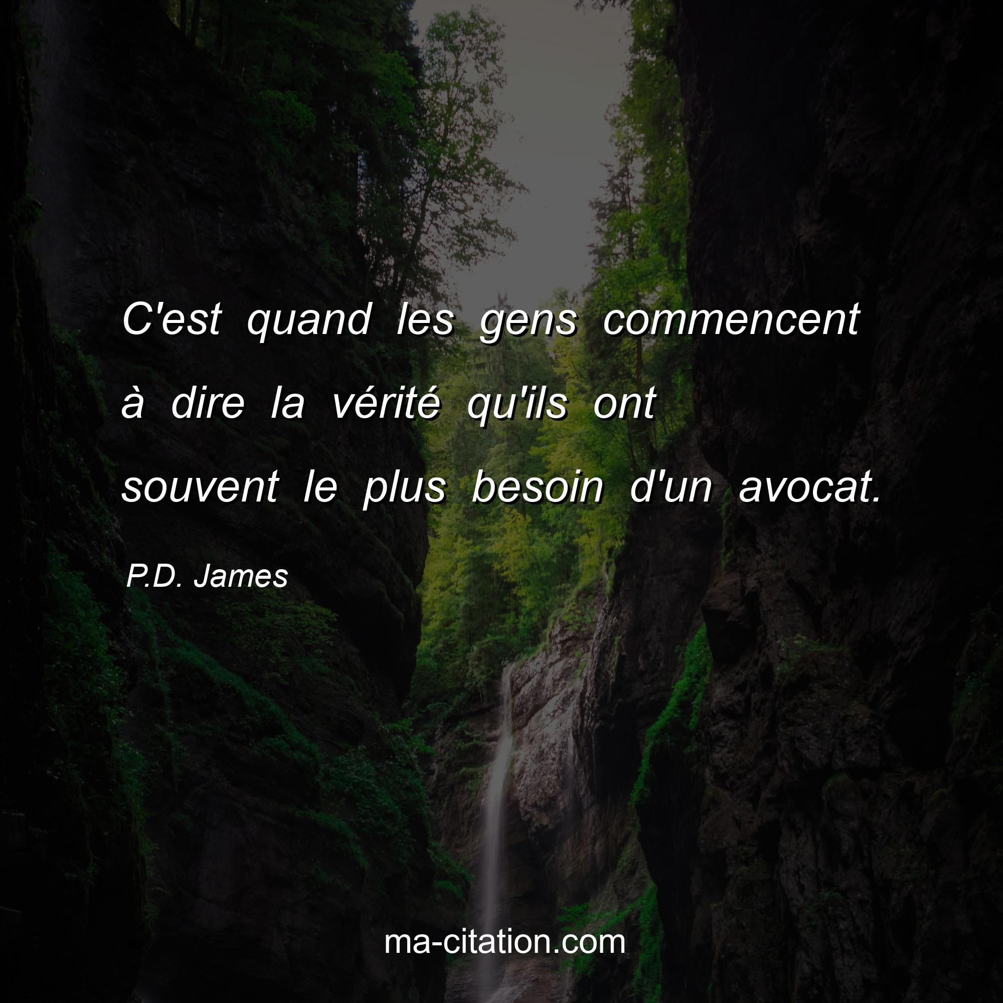 P.D. James est l'auteur de la citation sur la vie "C'est quand les gens commencent à dire la vérité qu'ils ont souvent le plus besoin d'un avocat.".