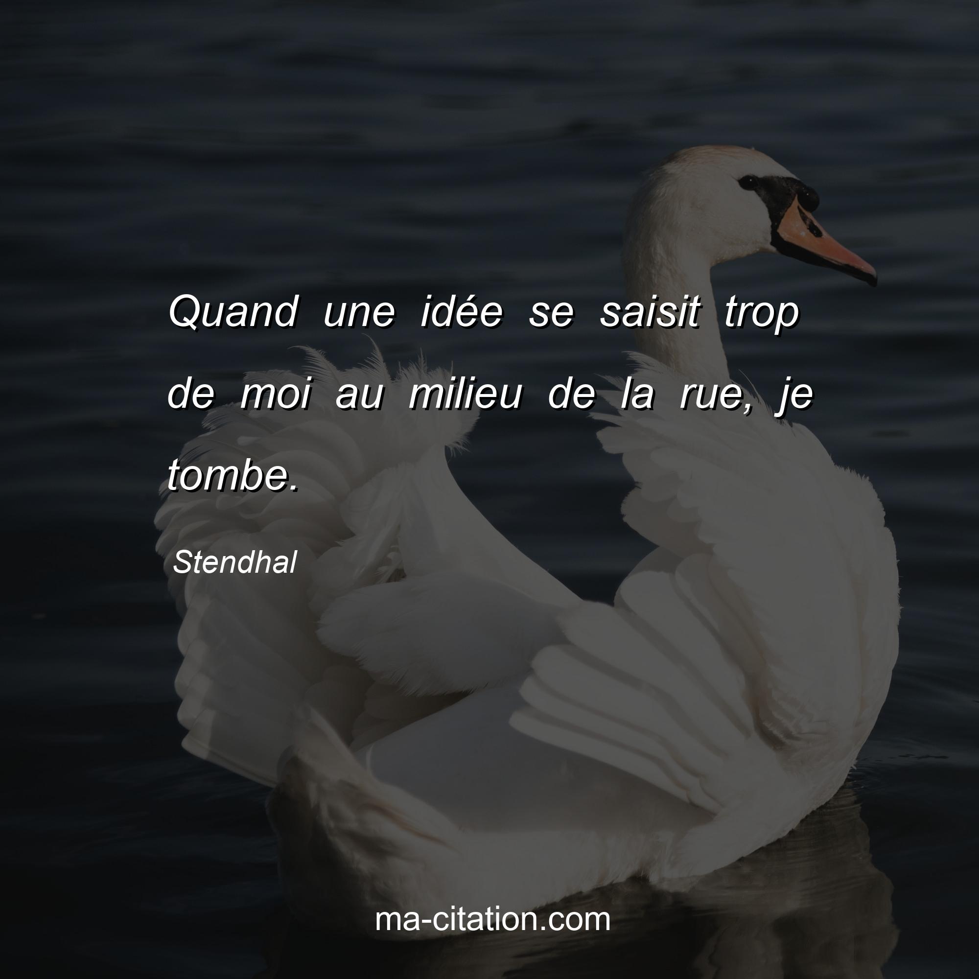 Citation sur la vie de Stendhal :Quand une idée se saisit trop de moi au milieu de la rue, je tombe.