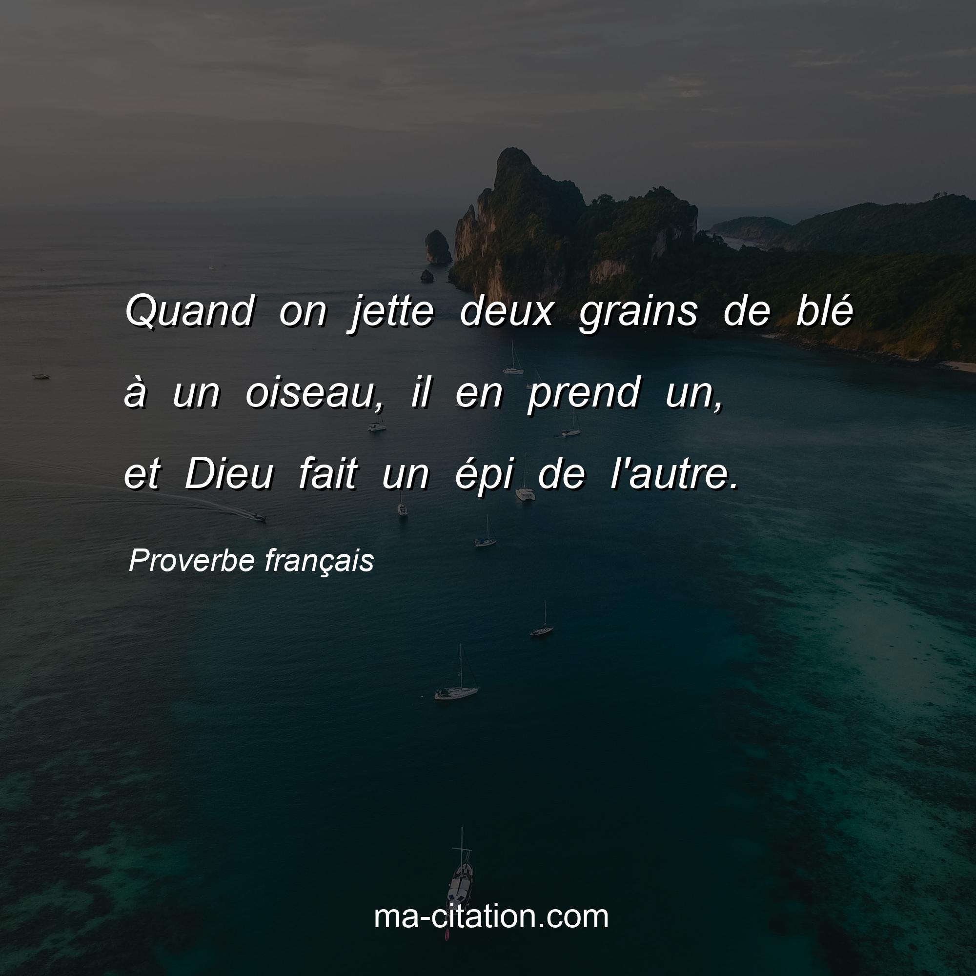 Proverbe français sur la vie :Quand on jette deux grains de blé à un oiseau, il en prend un, et Dieu fait un épi de l'autre.