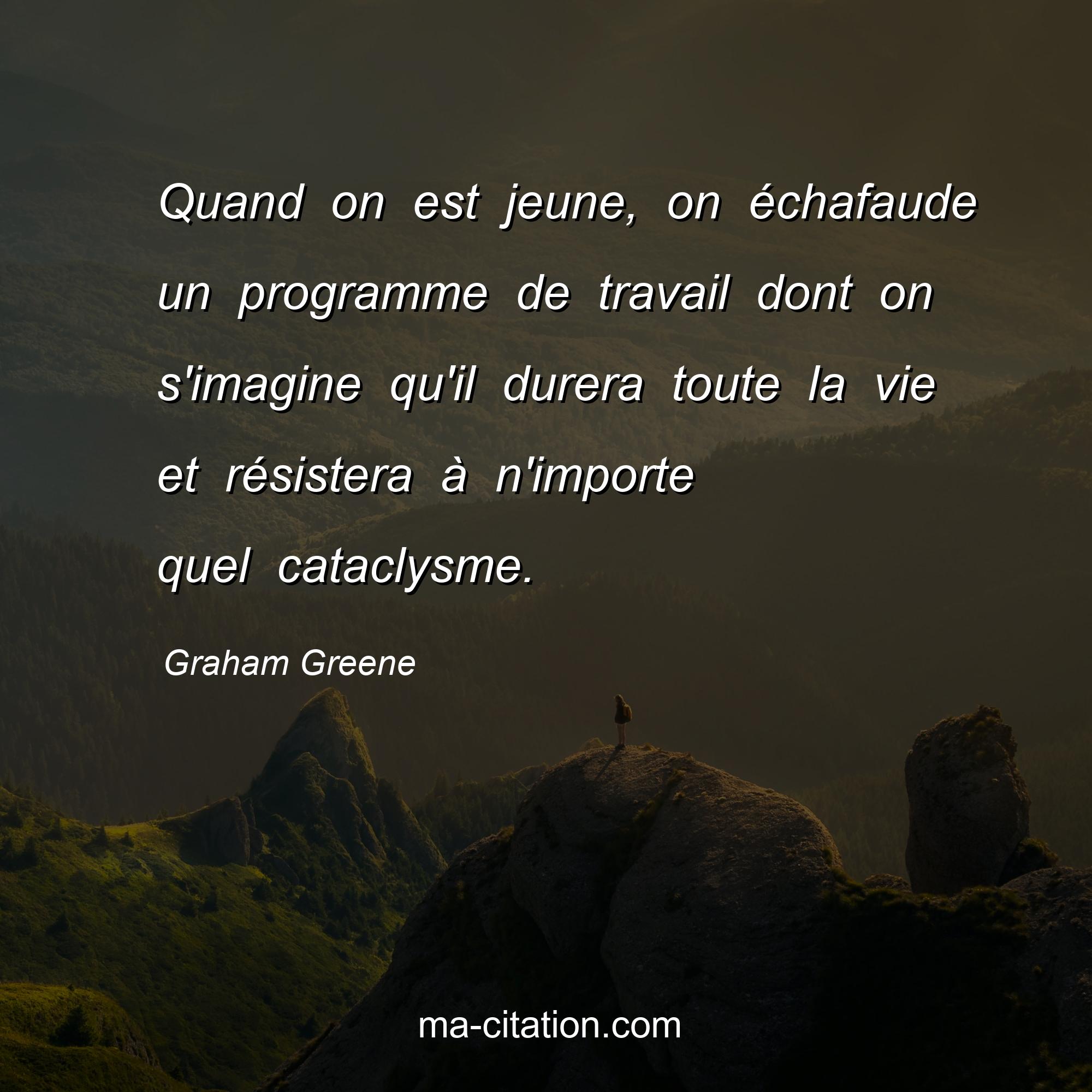 Citation sur la vie de Graham Greene :Quand on est jeune, on échafaude un programme de travail dont on s'imagine qu'il durera toute la vie et résistera à n'importe quel cataclysme.
