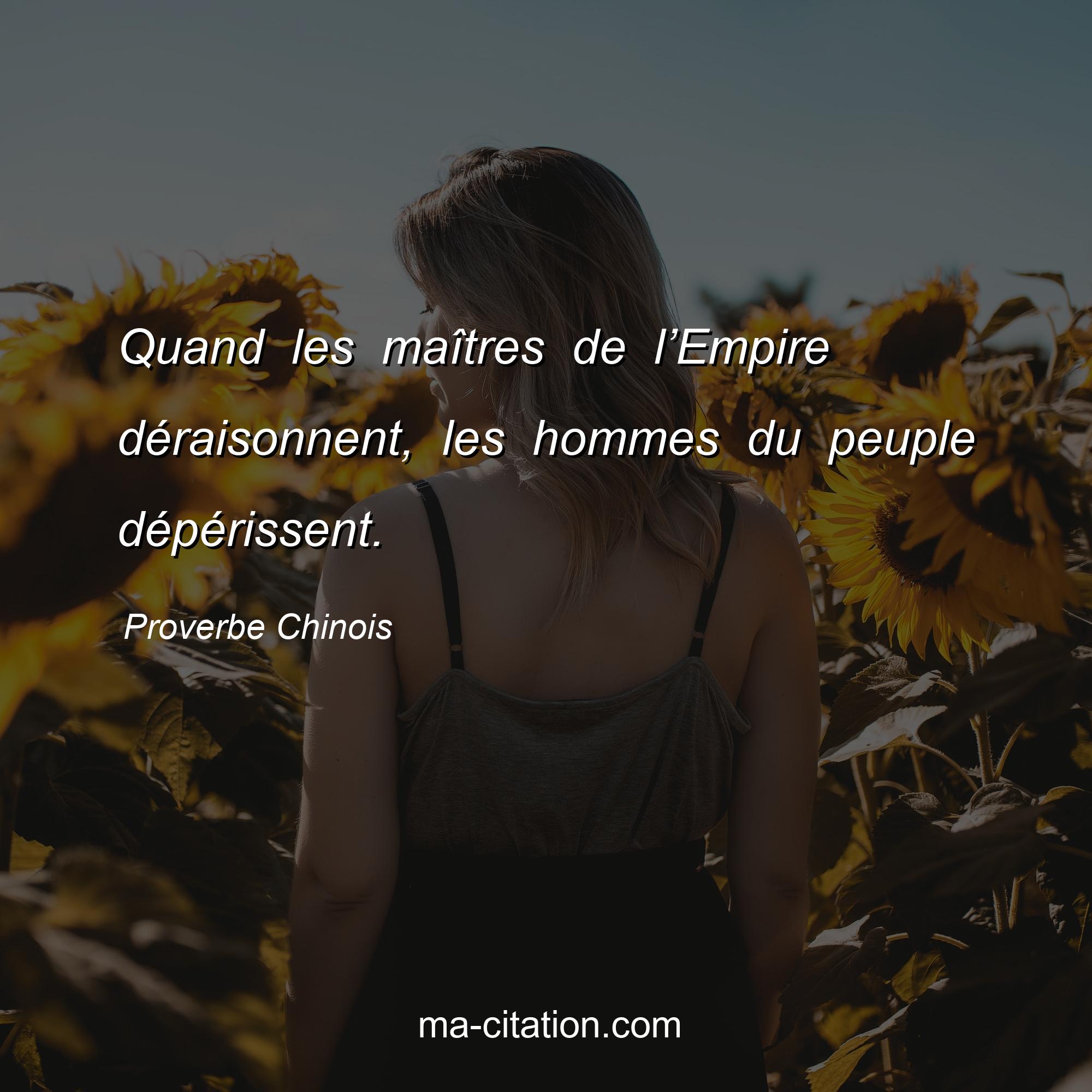 Proverbe Chinois sur la vie :Quand les maîtres de l’Empire déraisonnent, les hommes du peuple dépérissent.