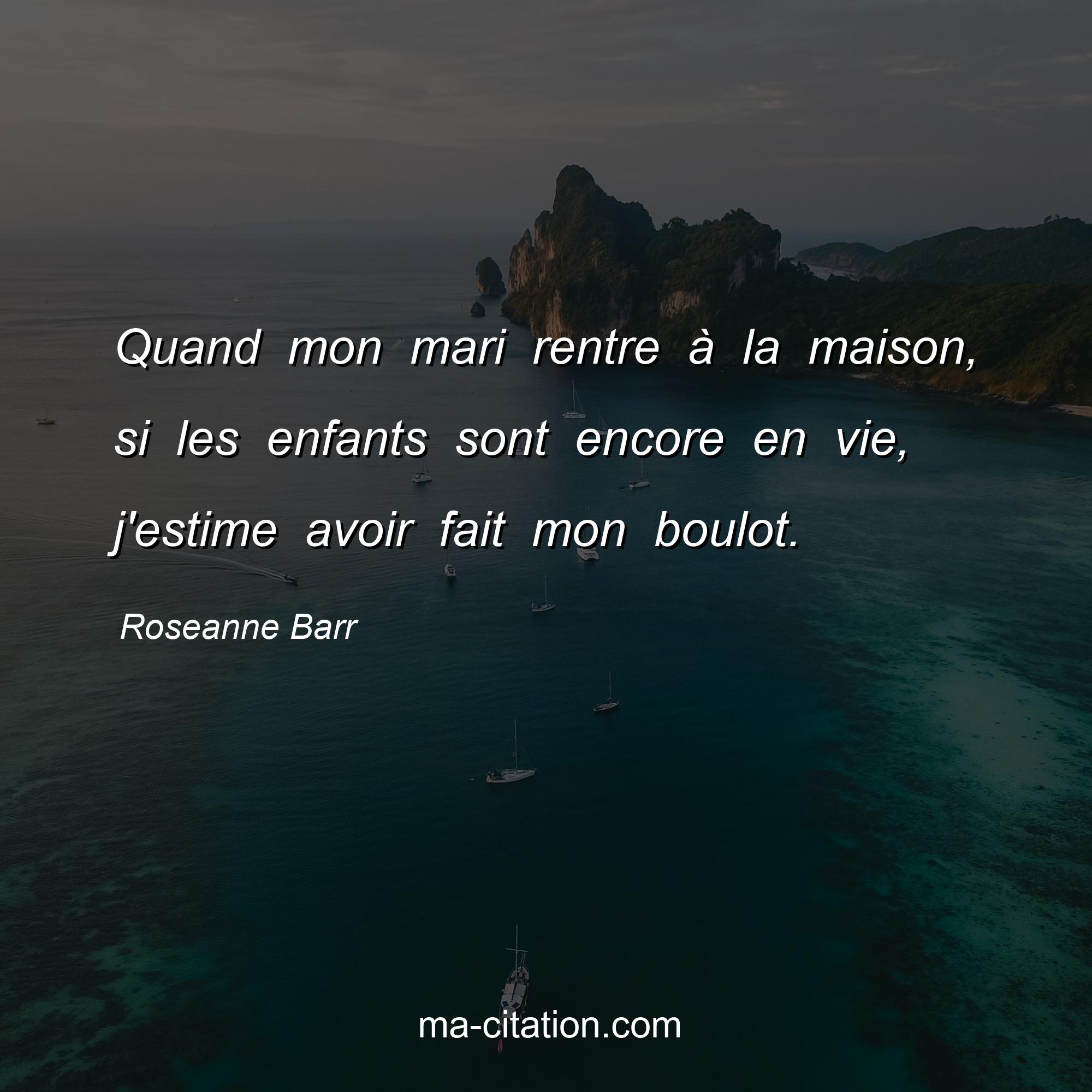 Citation sur la vie de Roseanne Barr :Quand mon mari rentre à la maison, si les enfants sont encore en vie, j'estime avoir fait mon boulot.
