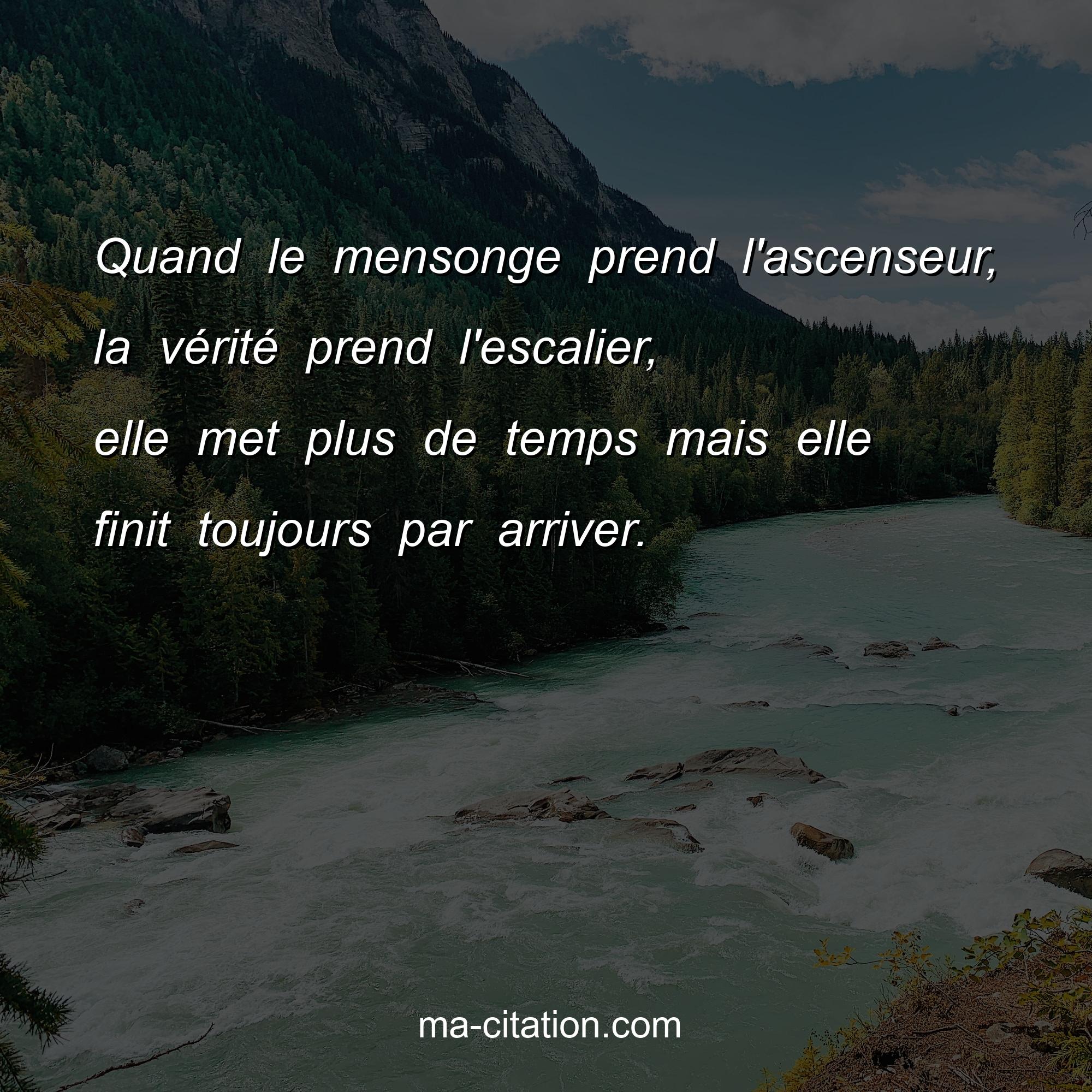 Quand le mensonge prend l'ascenseur, la vérité prend l'escalier, elle met plus de temps mais elle finit toujours par arriver.