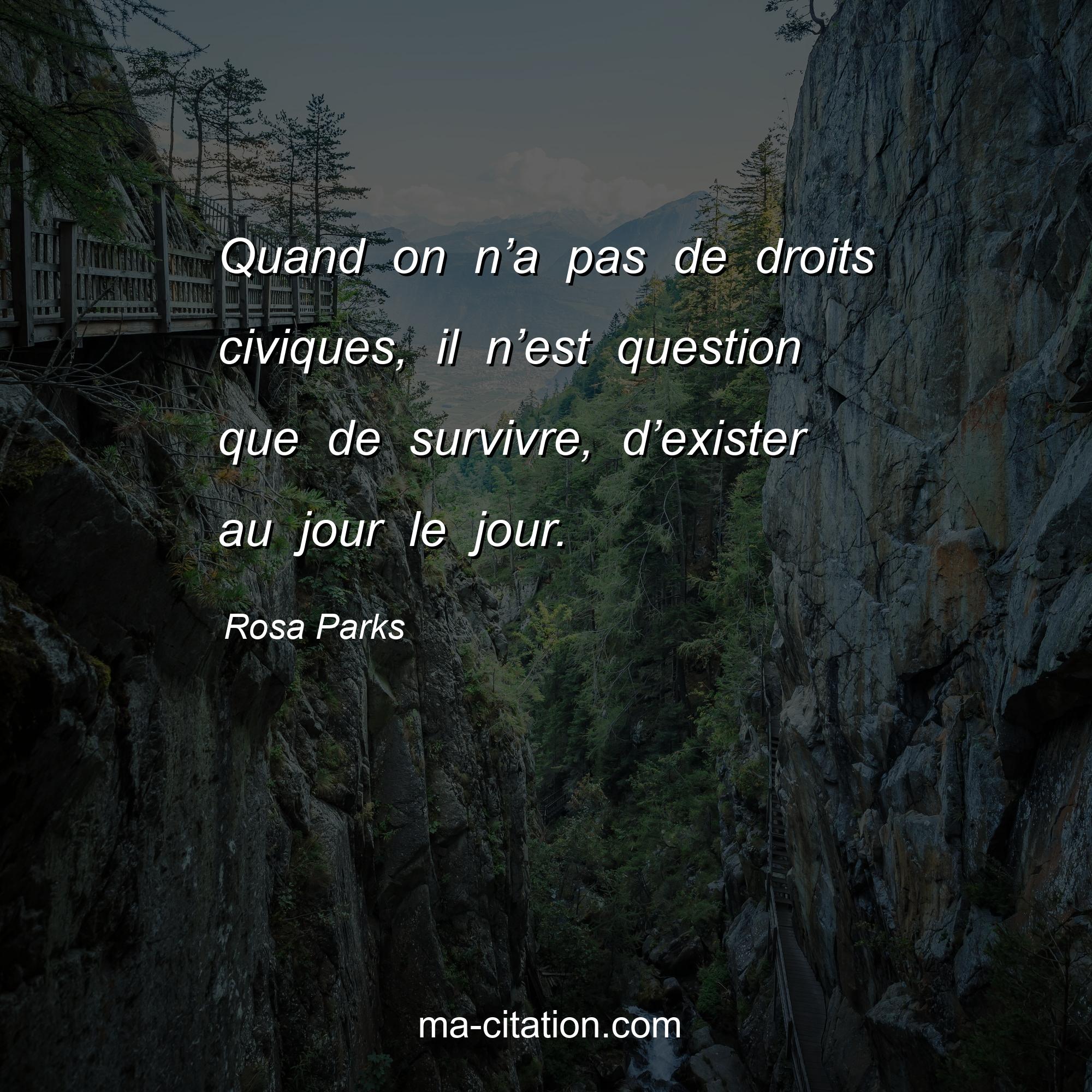 Citation sur la vie de Rosa Parks :Quand on n’a pas de droits civiques, il n’est question que de survivre, d’exister au jour le jour.