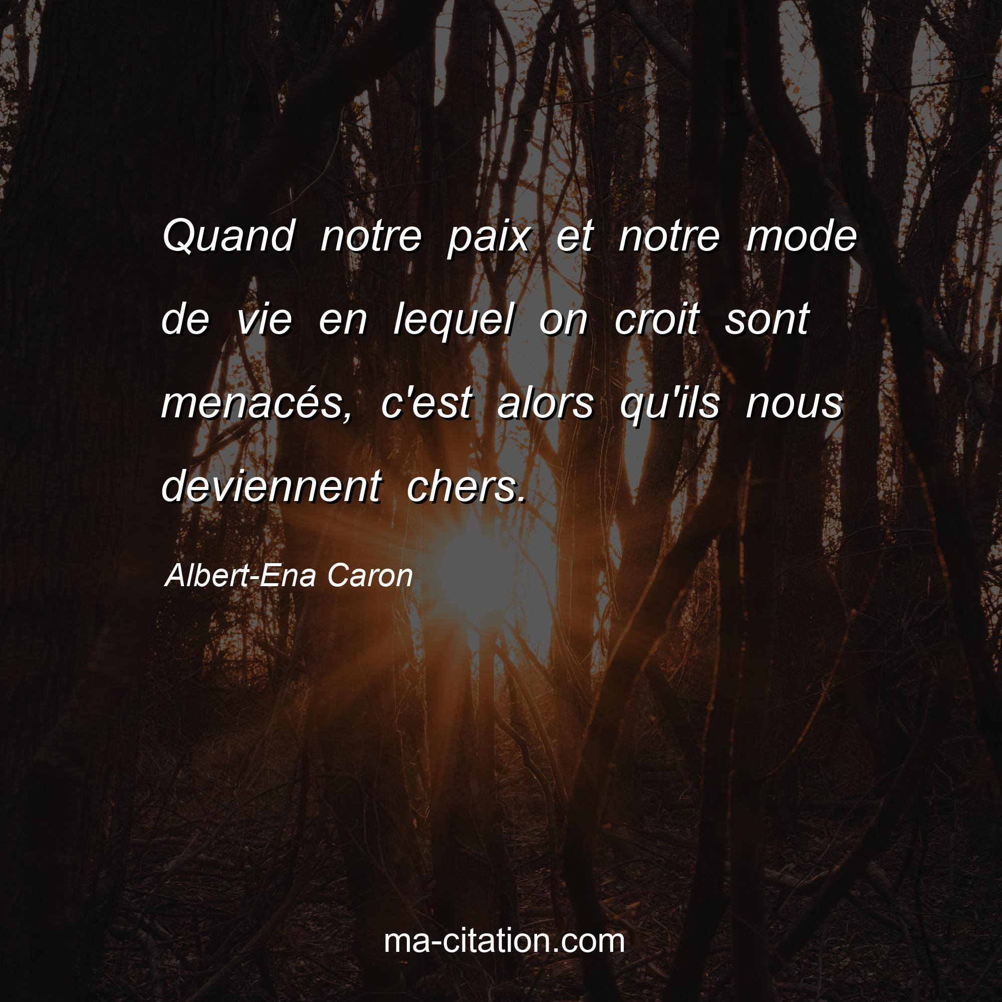 Citation sur la vie d'Albert-Ena Caron :Quand notre paix et notre mode de vie en lequel on croit sont menacés, c'est alors qu'ils nous deviennent chers.