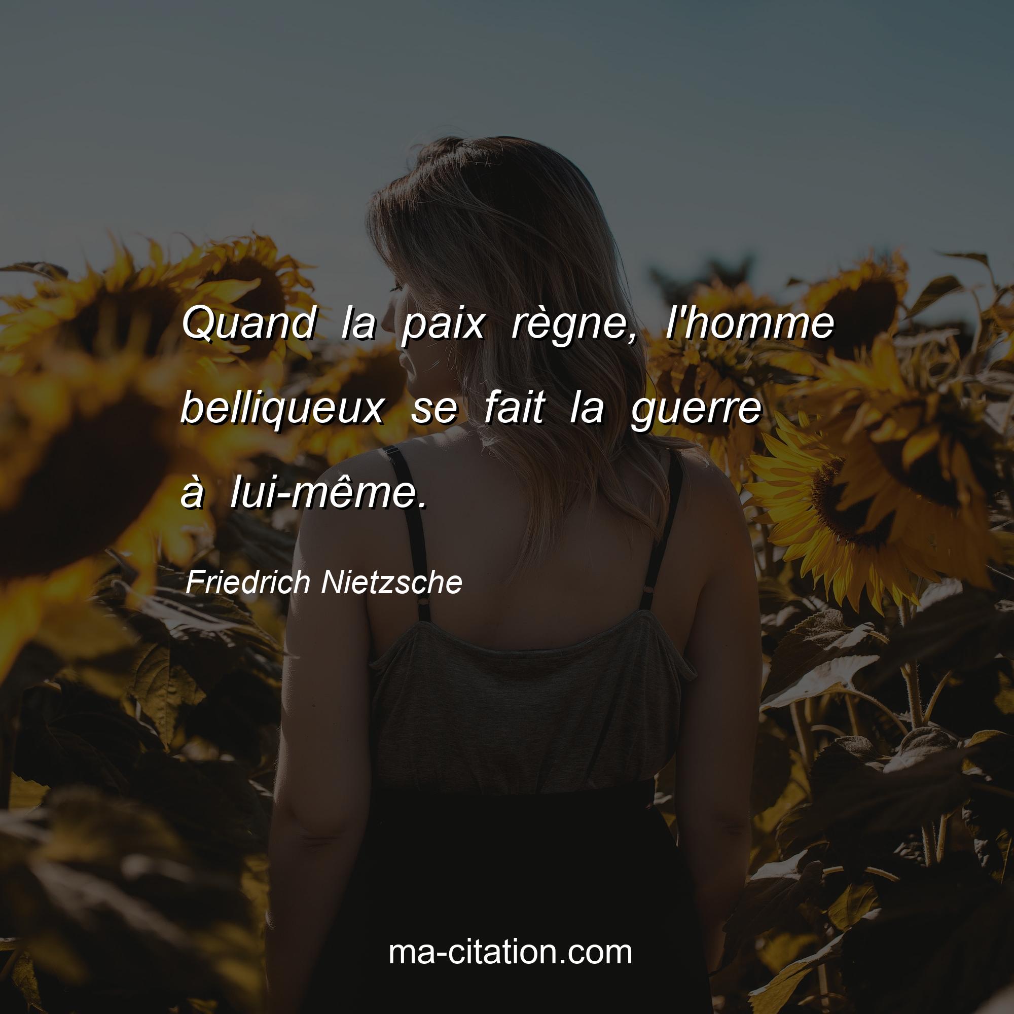 Citation sur la vie de Friedrich Nietzsche :Quand la paix règne, l'homme belliqueux se fait la guerre à lui-même.