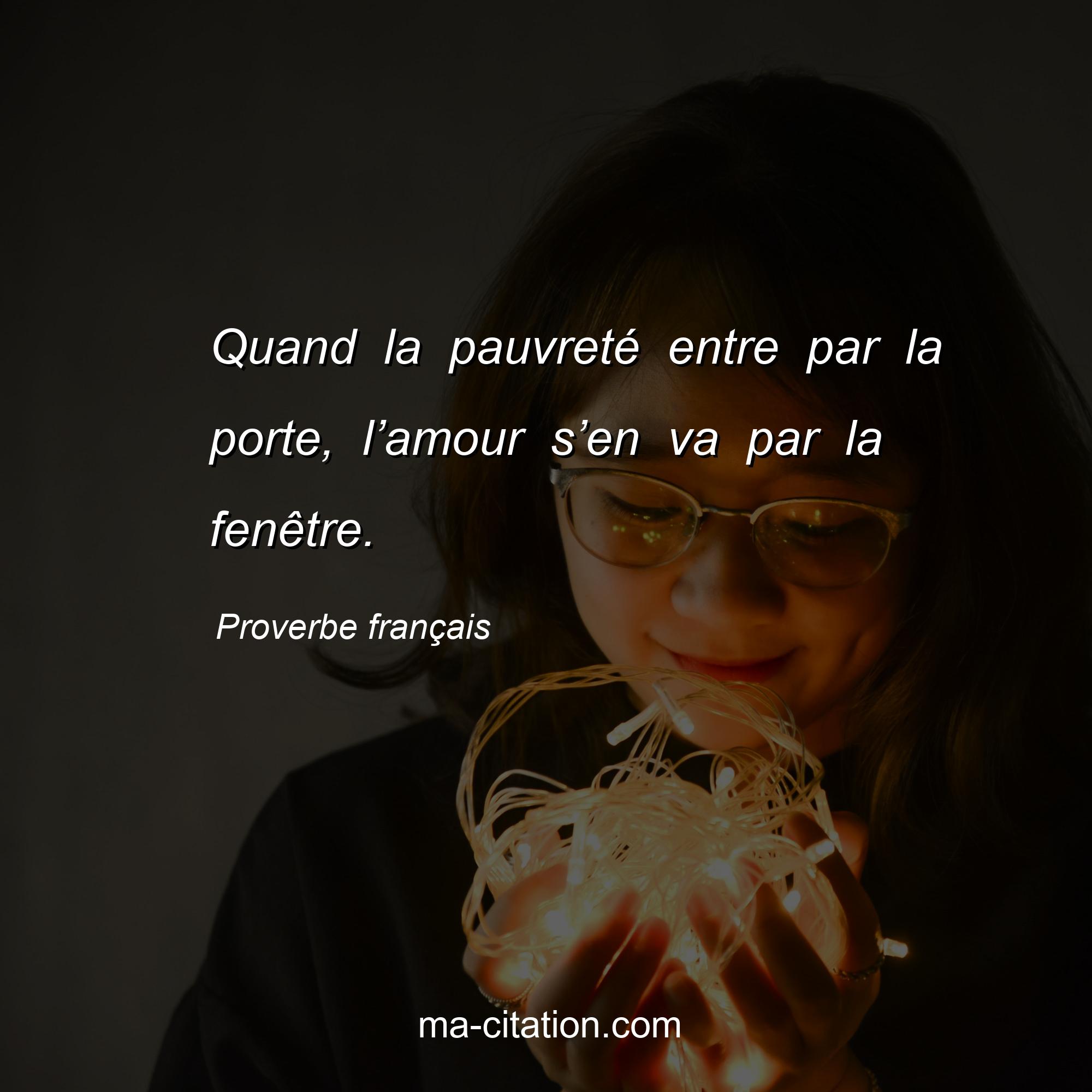 Proverbe français sur la vie :Quand la pauvreté entre par la porte, l’amour s’en va par la fenêtre.