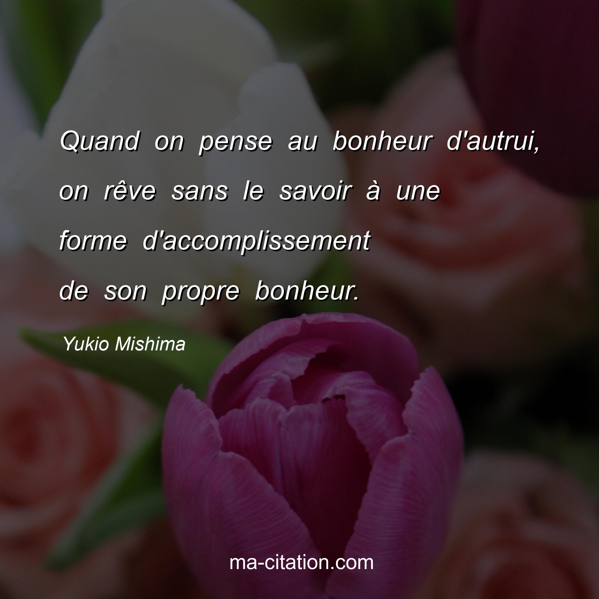 Yukio Mishima est l'auteur de la citation sur la vie "Quand on pense au bonheur d'autrui, on rêve sans le savoir à une forme d'accomplissement de son propre bonheur.".