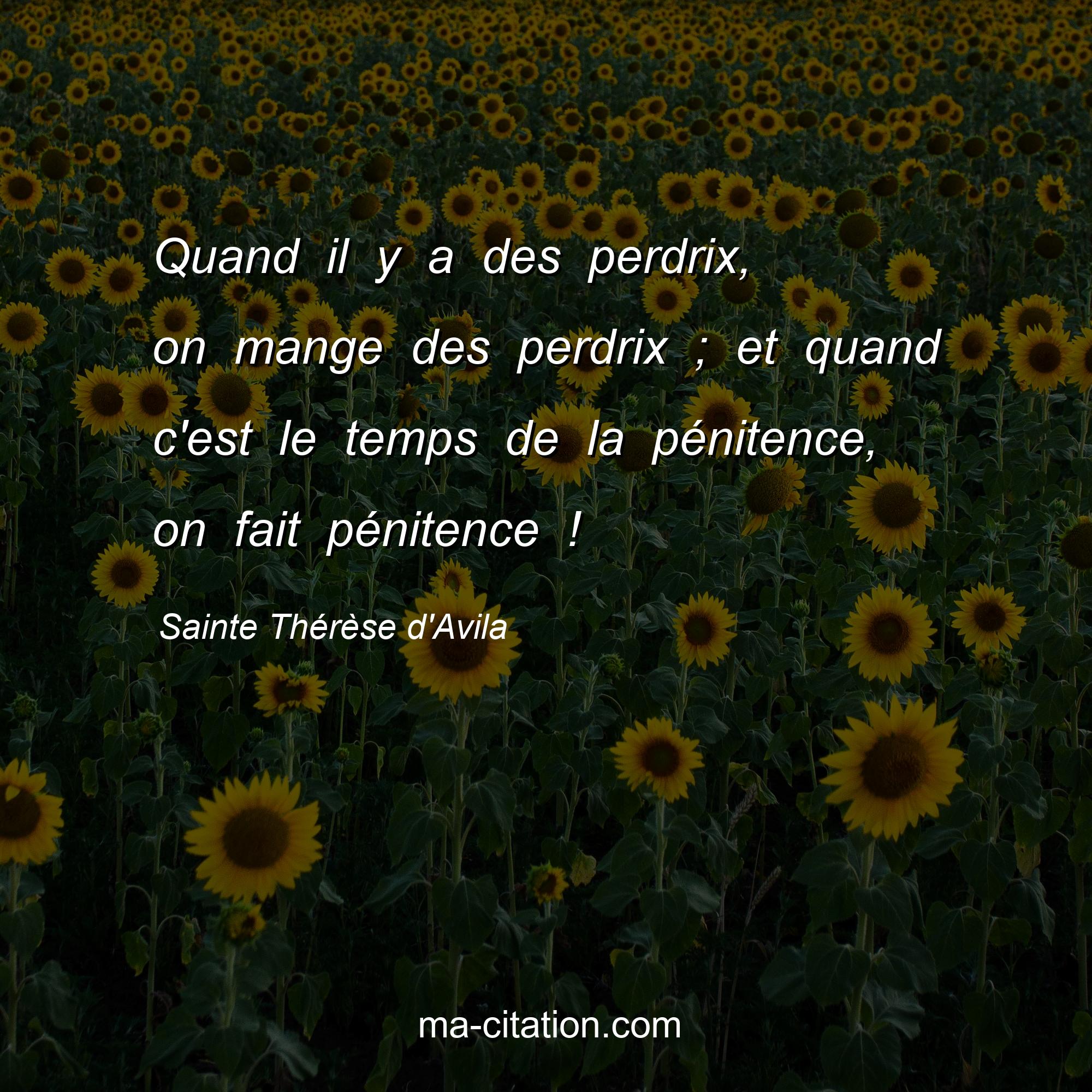 Citation sur la vie de Sainte Thérèse d'Avila :Quand il y a des perdrix, on mange des perdrix ; et quand c'est le temps de la pénitence, on fait pénitence !