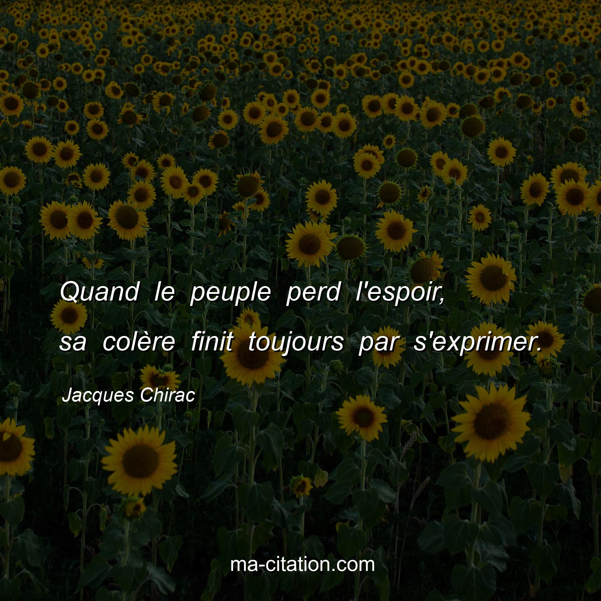 Citation sur la vie de Jacques Chirac :Quand le peuple perd l'espoir, sa colère finit toujours par s'exprimer.
