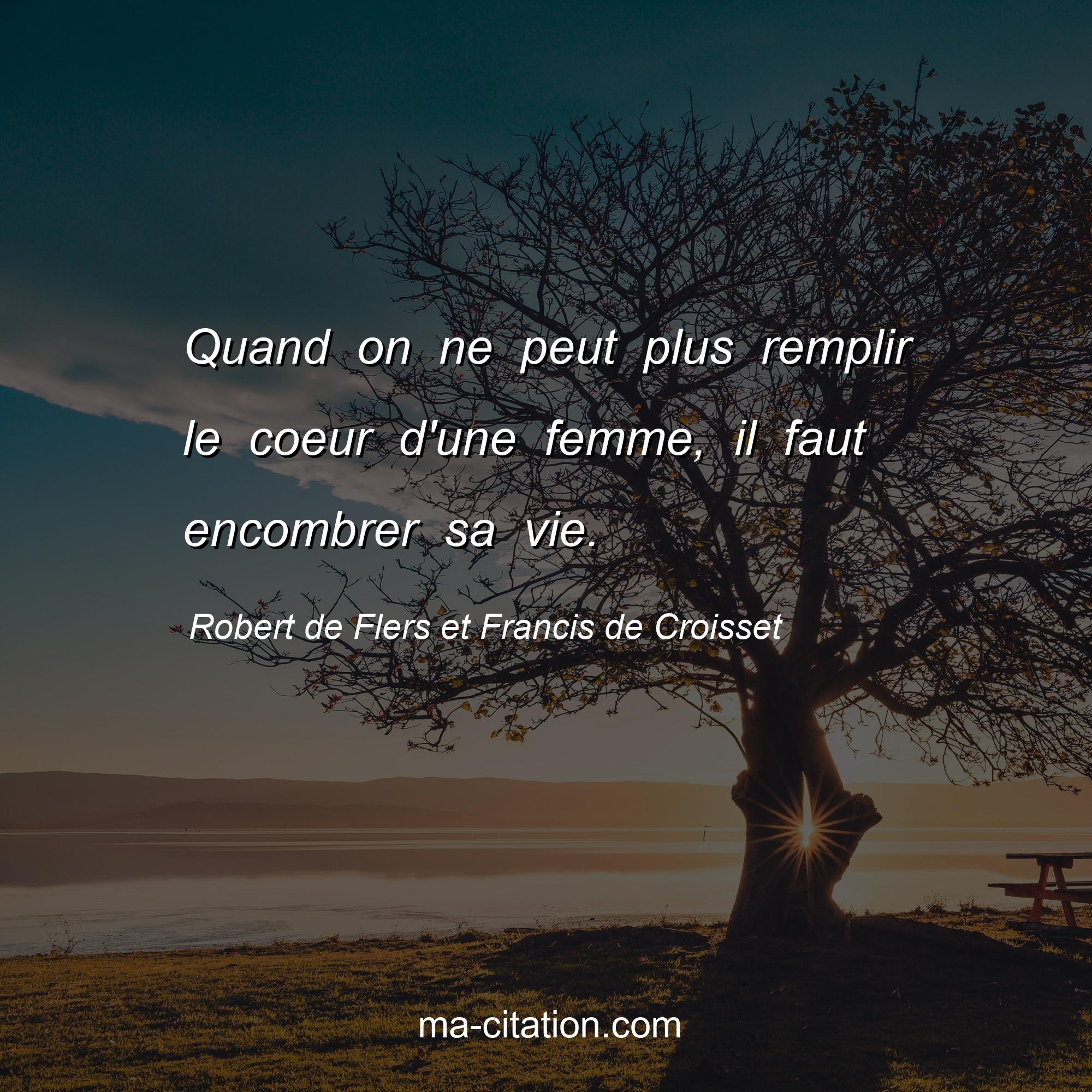 Robert de Flers et Francis de Croisset est l'auteur de la citation sur la vie "Quand on ne peut plus remplir le coeur d'une femme, il faut encombrer sa vie.".
