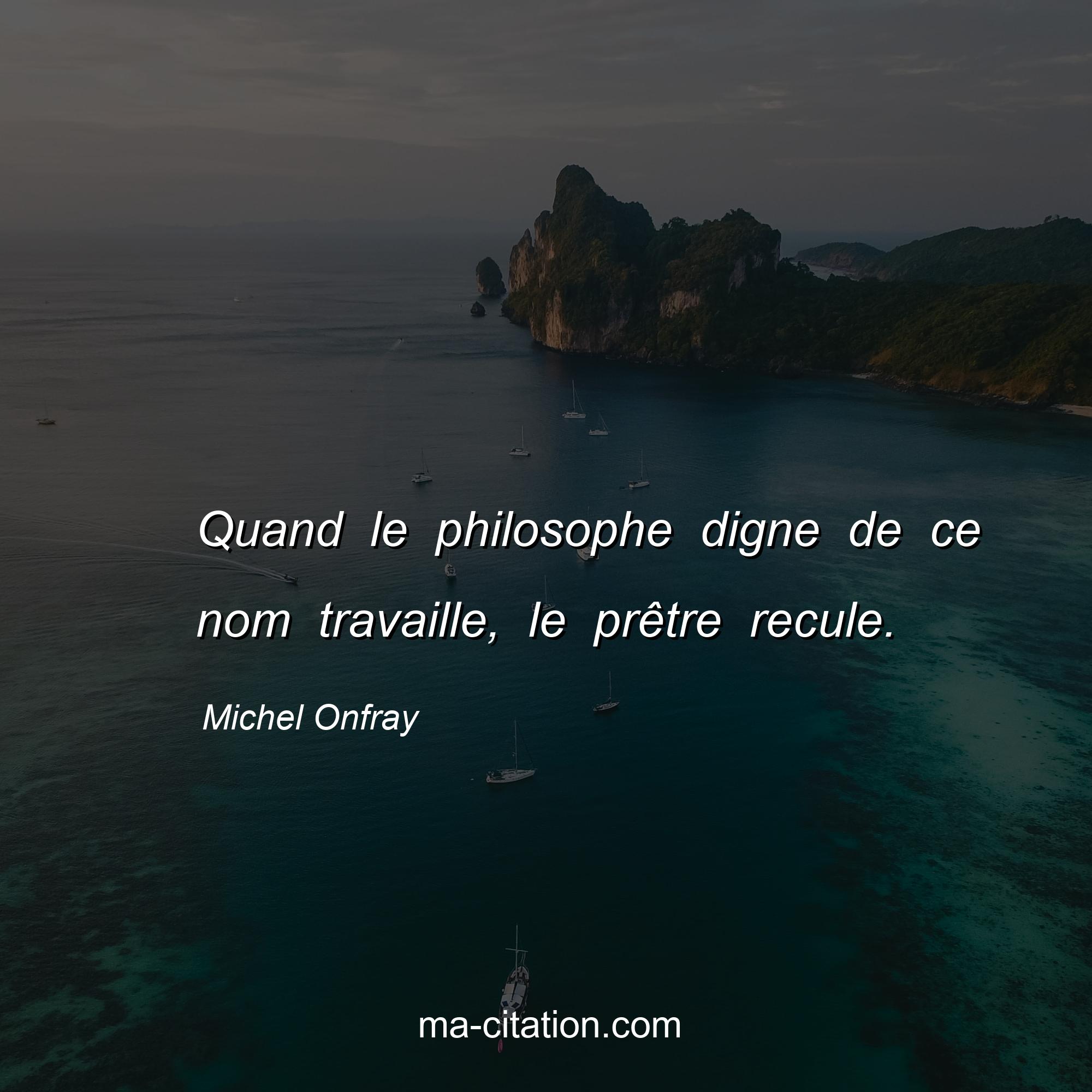 Citation sur la vie de Michel Onfray :Quand le philosophe digne de ce nom travaille, le prêtre recule.