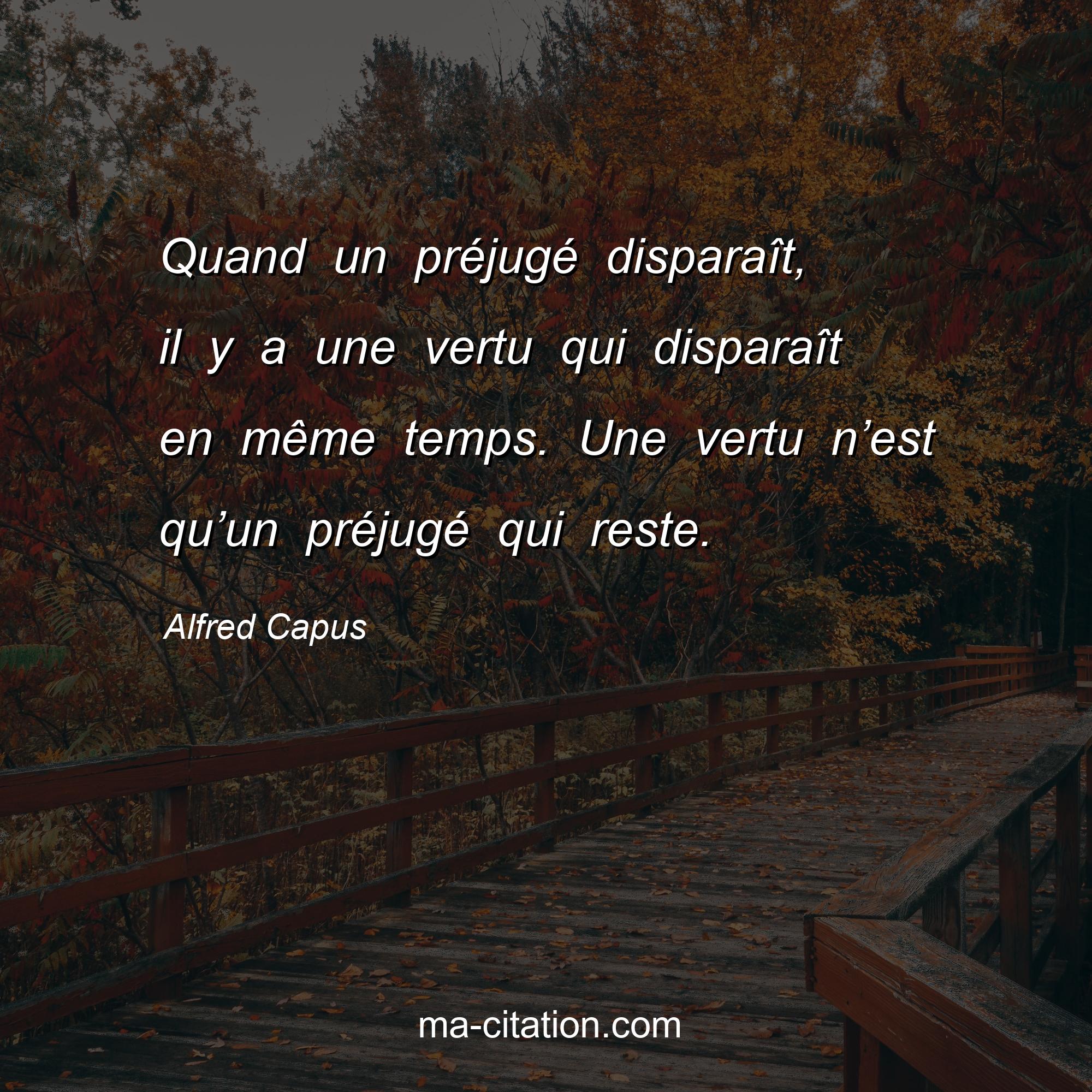 Citation sur la vie d'Alfred Capus :Quand un préjugé disparaît, il y a une vertu qui disparaît en même temps. Une vertu n’est qu’un préjugé qui reste.
