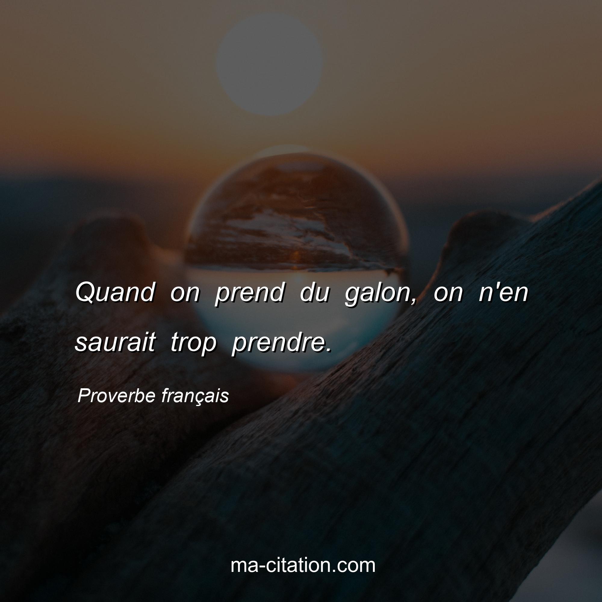 Proverbe français sur la vie :Quand on prend du galon, on n'en saurait trop prendre.