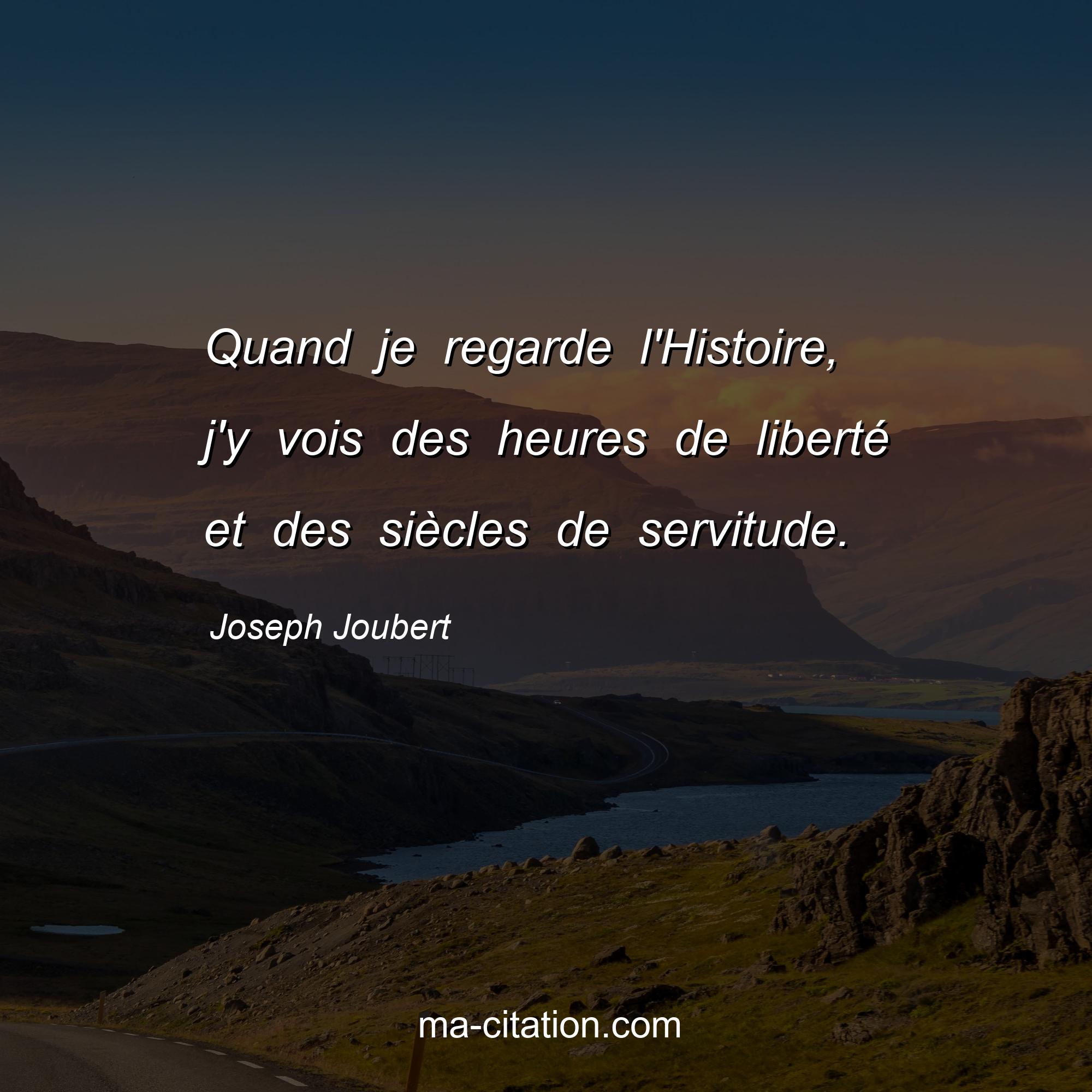 Citation sur la vie de Joseph Joubert :Quand je regarde l'Histoire, j'y vois des heures de liberté et des siècles de servitude.