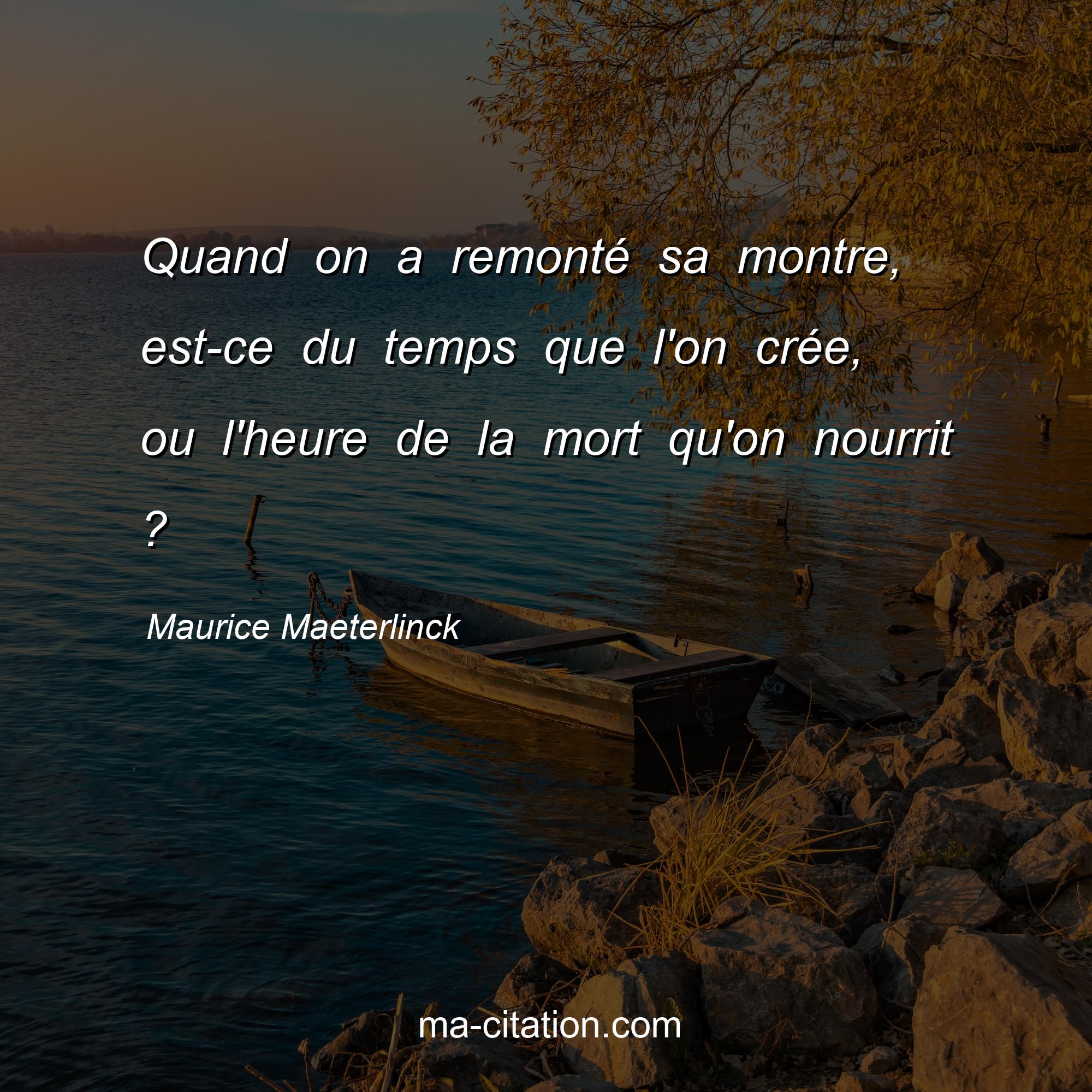 Citation sur la vie de Maurice Maeterlinck :Quand on a remonté sa montre, est-ce du temps que l'on crée, ou l'heure de la mort qu'on nourrit ?