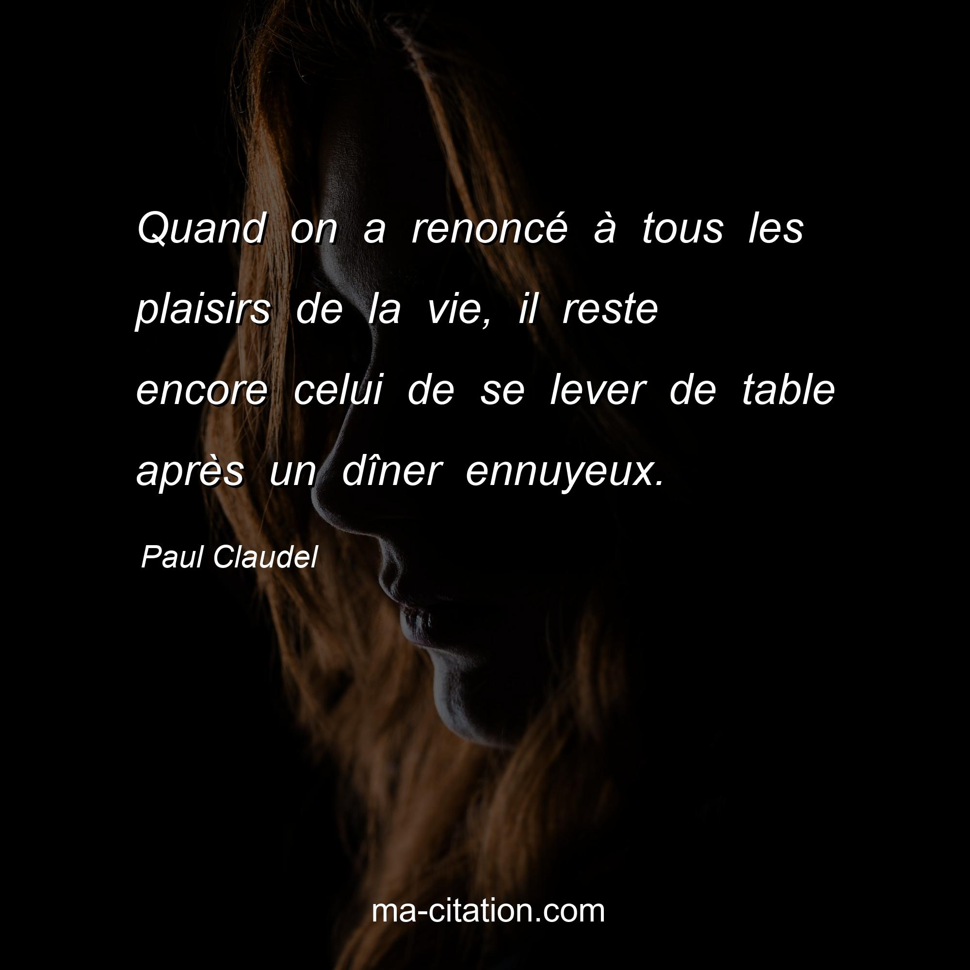 Citation sur la vie de Paul Claudel :Quand on a renoncé à tous les plaisirs de la vie, il reste encore celui de se lever de table après un dîner ennuyeux.