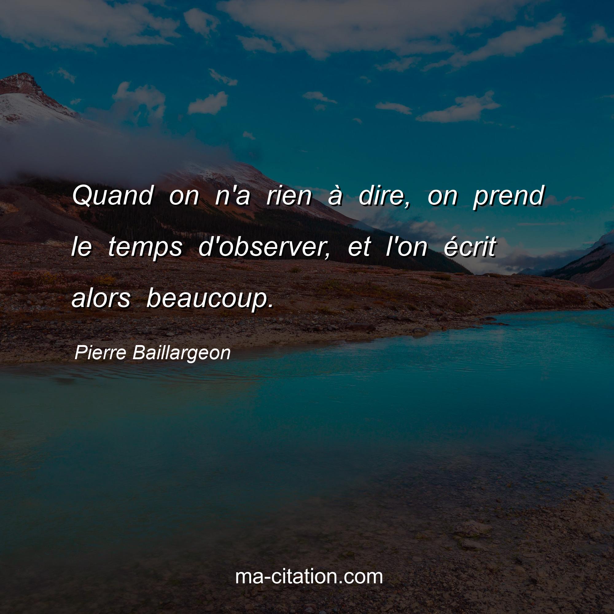 Citation sur la vie de Pierre Baillargeon :Quand on n'a rien à dire, on prend le temps d'observer, et l'on écrit alors beaucoup.