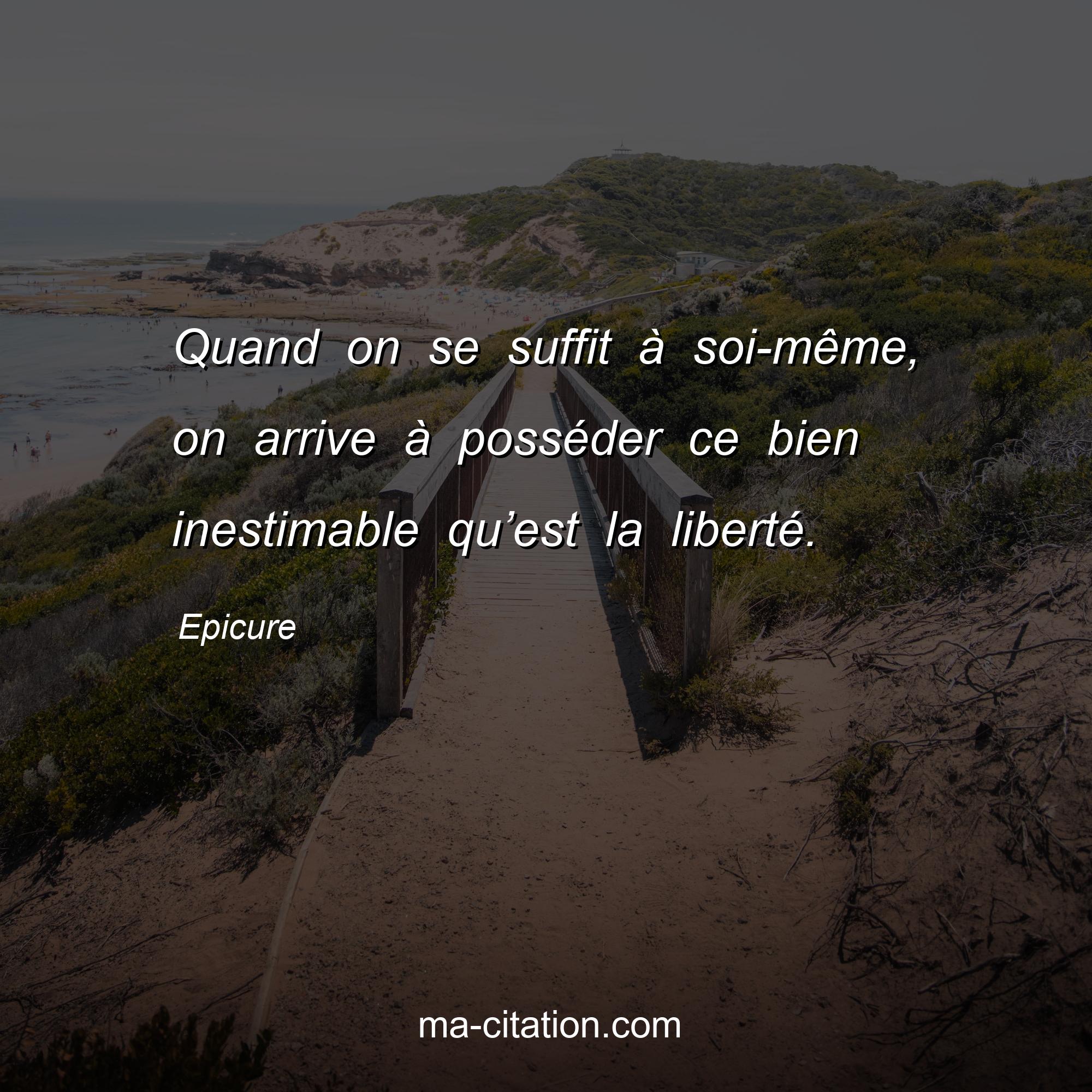 Citation sur la vie d'Epicure :Quand on se suffit à soi-même, on arrive à posséder ce bien inestimable qu’est la liberté.