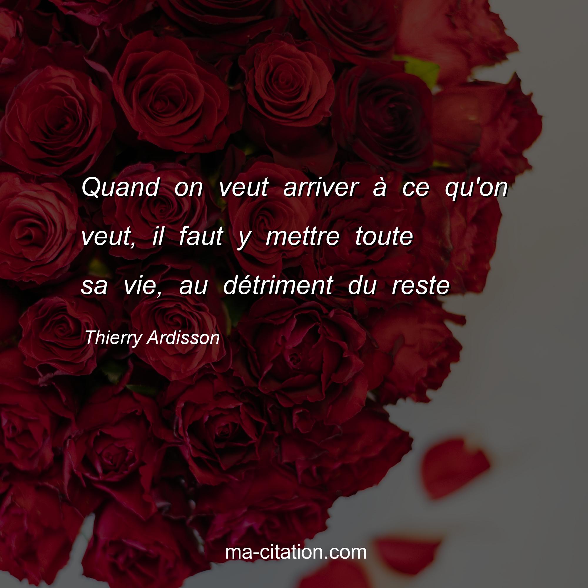 Citation sur la vie de Thierry Ardisson :Quand on veut arriver à ce qu'on veut, il faut y mettre toute sa vie, au détriment du reste