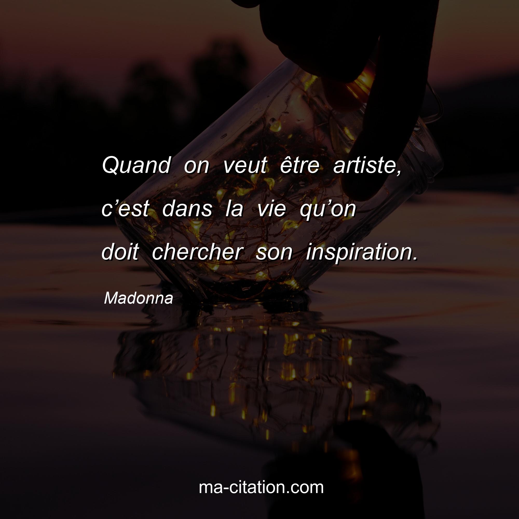 Citation sur la vie de Madonna :Quand on veut être artiste, c’est dans la vie qu’on doit chercher son inspiration.