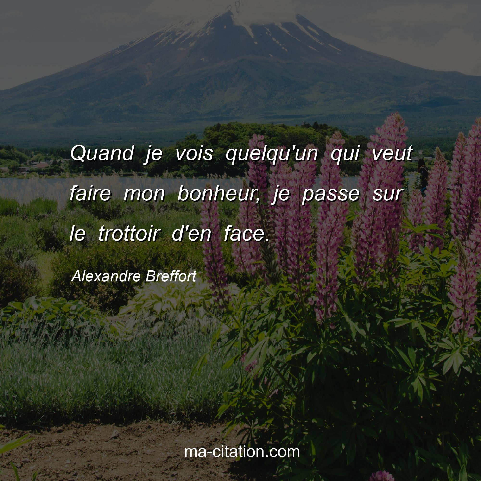 Citation sur la vie d'Alexandre Breffort :Quand je vois quelqu'un qui veut faire mon bonheur, je passe sur le trottoir d'en face.