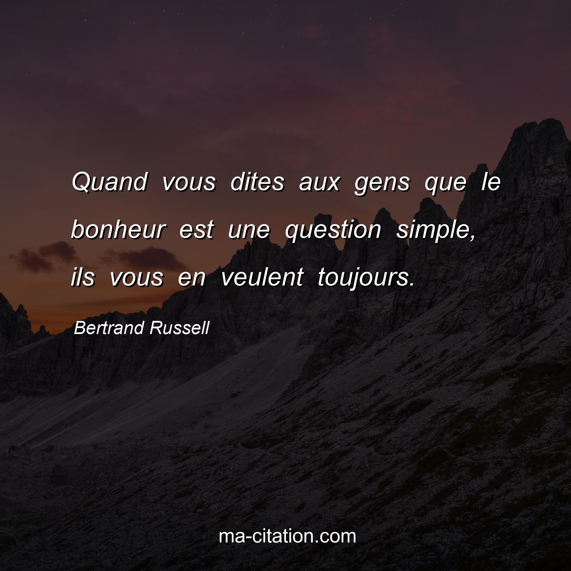 Citation sur la vie de Bertrand Russell :Quand vous dites aux gens que le bonheur est une question simple, ils vous en veulent toujours.