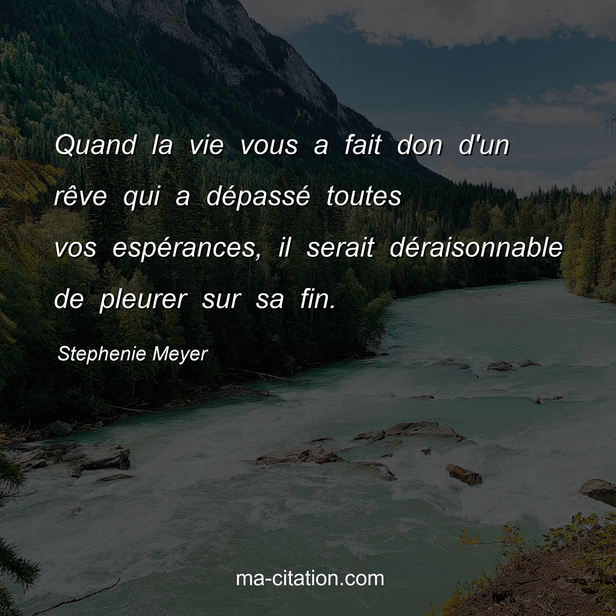 Citation sur la vie de Stephenie Meyer :Quand la vie vous a fait don d'un rêve qui a dépassé toutes vos espérances, il serait déraisonnable de pleurer sur sa fin.