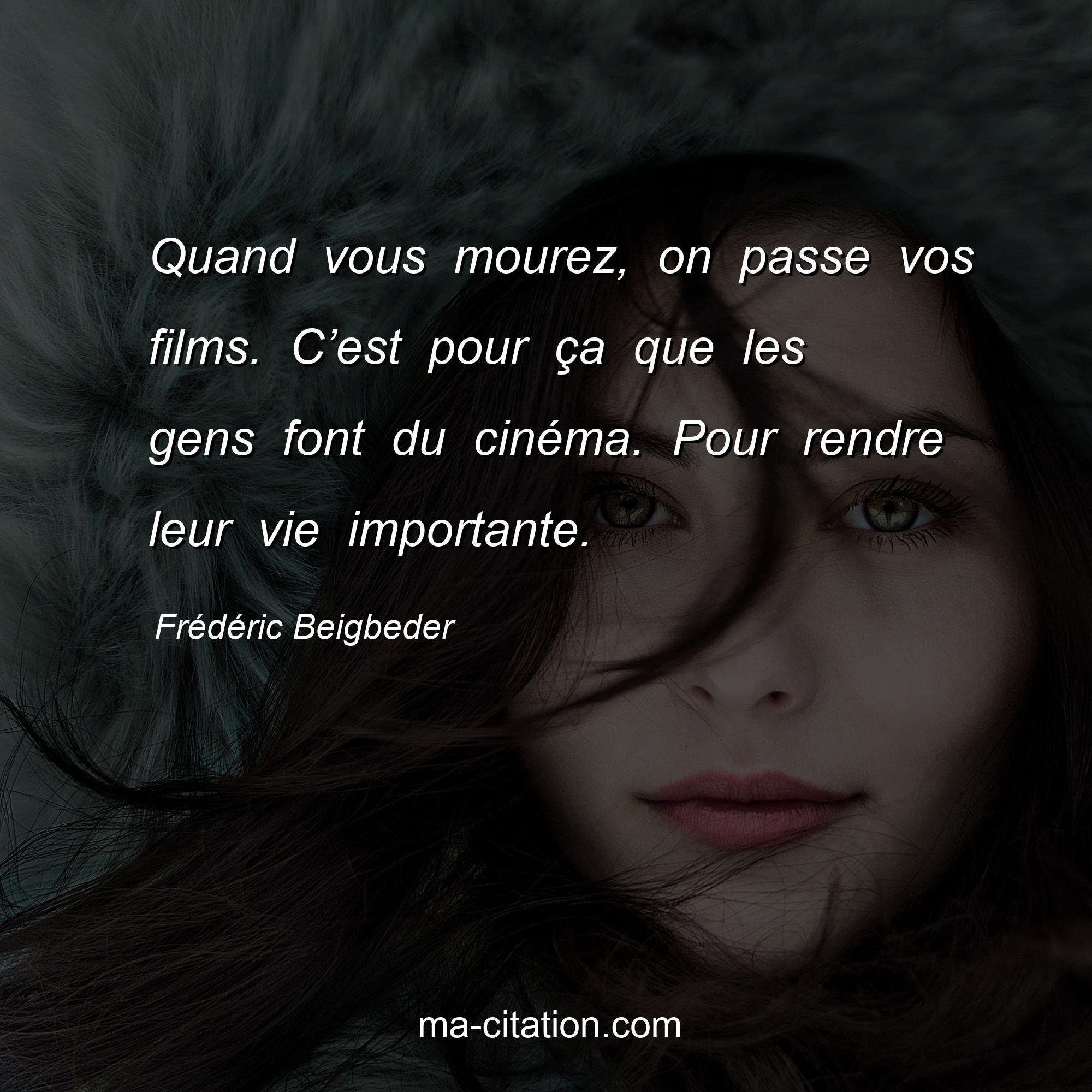 Citation sur la vie de Frédéric Beigbeder :Quand vous mourez, on passe vos films. C’est pour ça que les gens font du cinéma. Pour rendre leur vie importante.