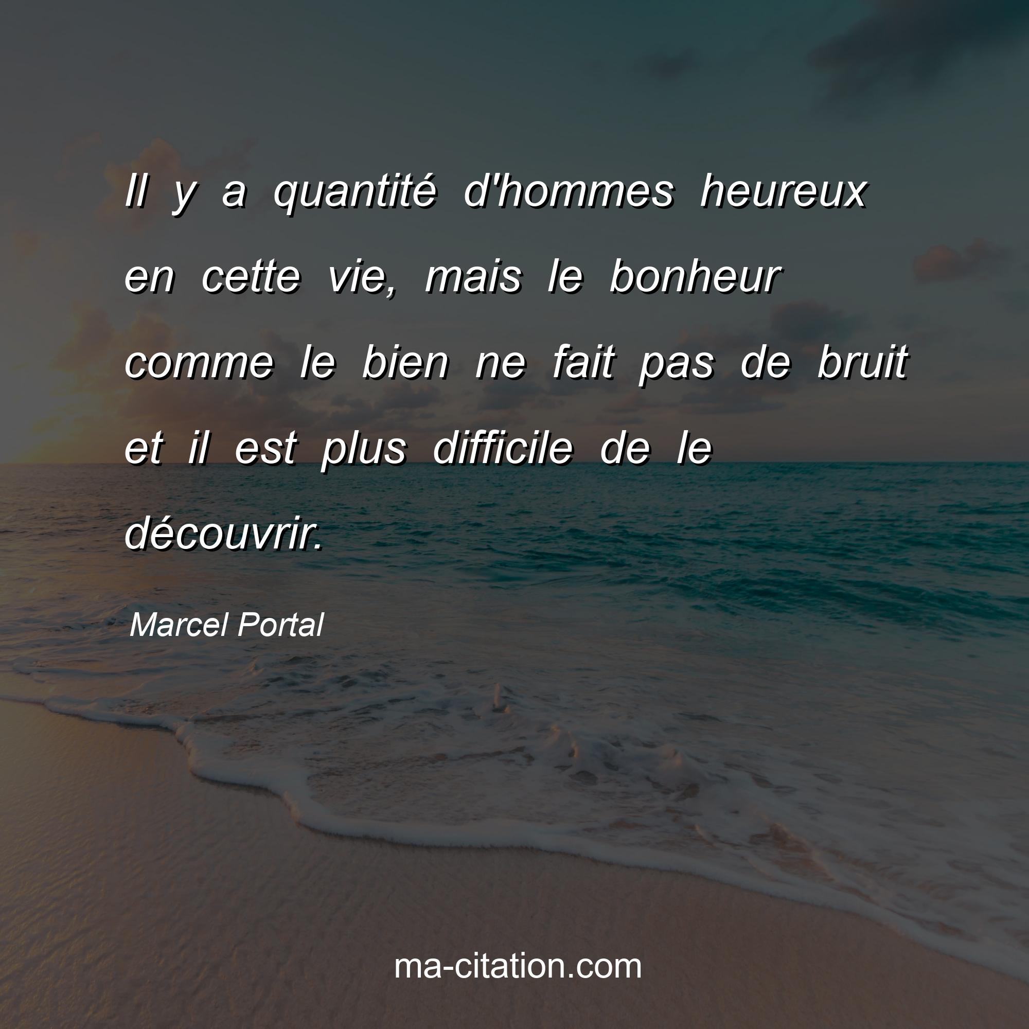 Marcel Portal est l'auteur de la citation sur la vie "Il y a quantité d'hommes heureux en cette vie, mais le bonheur comme le bien ne fait pas de bruit et il est plus difficile de le découvrir.".