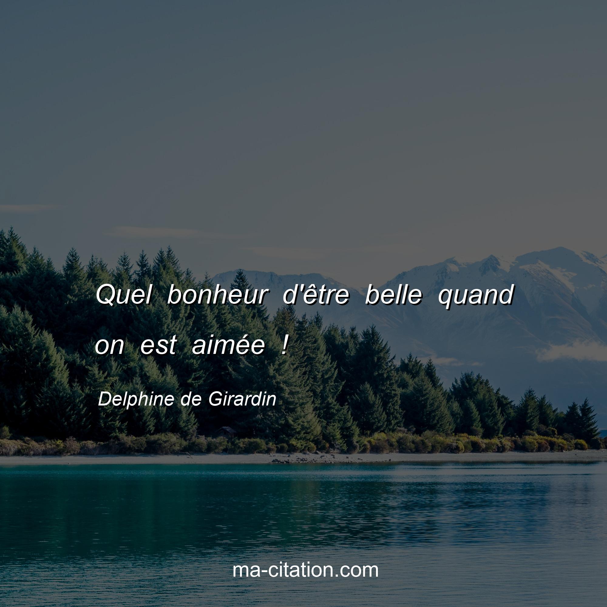Citation sur la vie de Delphine de Girardin :Quel bonheur d'être belle quand on est aimée !