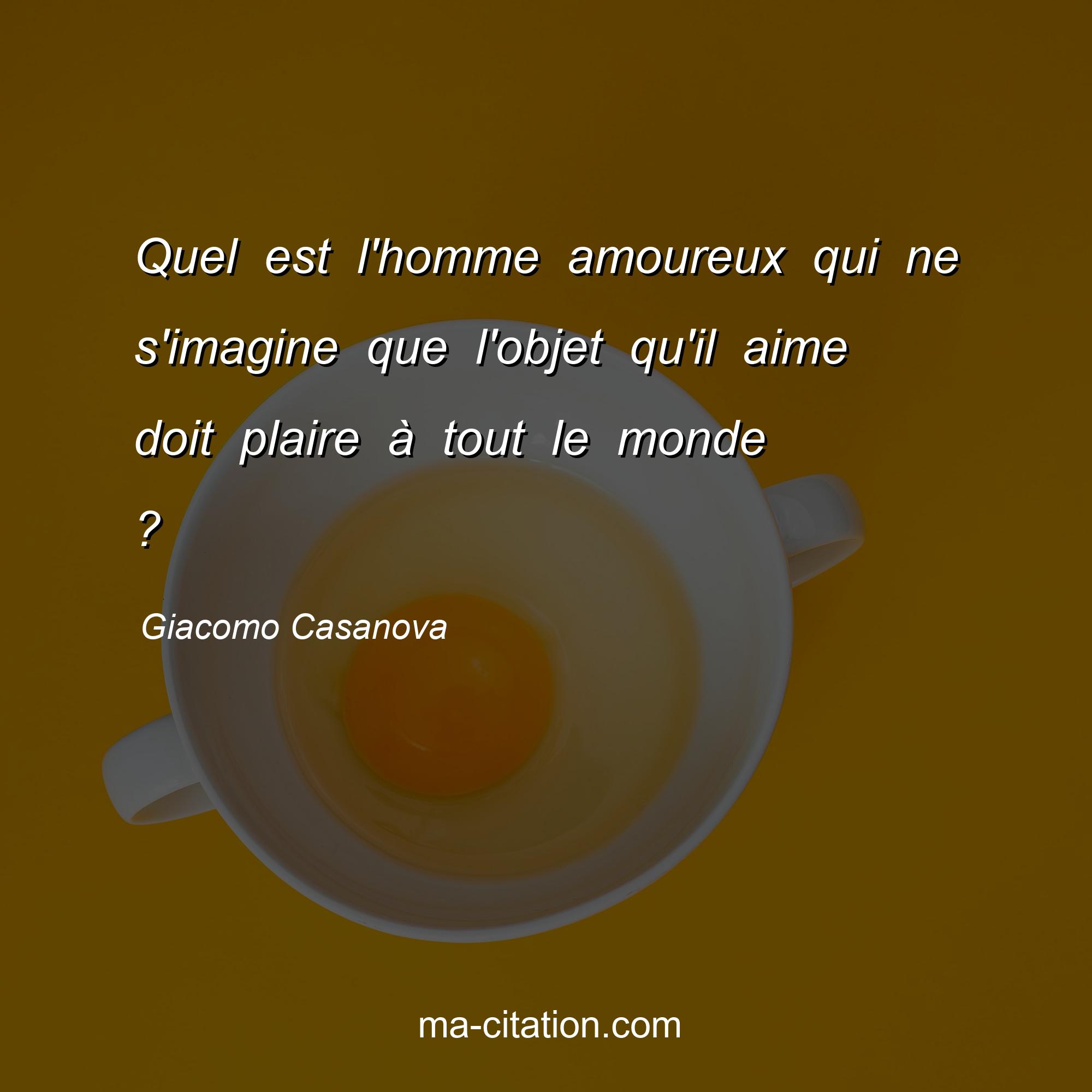 Citation sur la vie de Giacomo Casanova :Quel est l'homme amoureux qui ne s'imagine que l'objet qu'il aime doit plaire à tout le monde ?