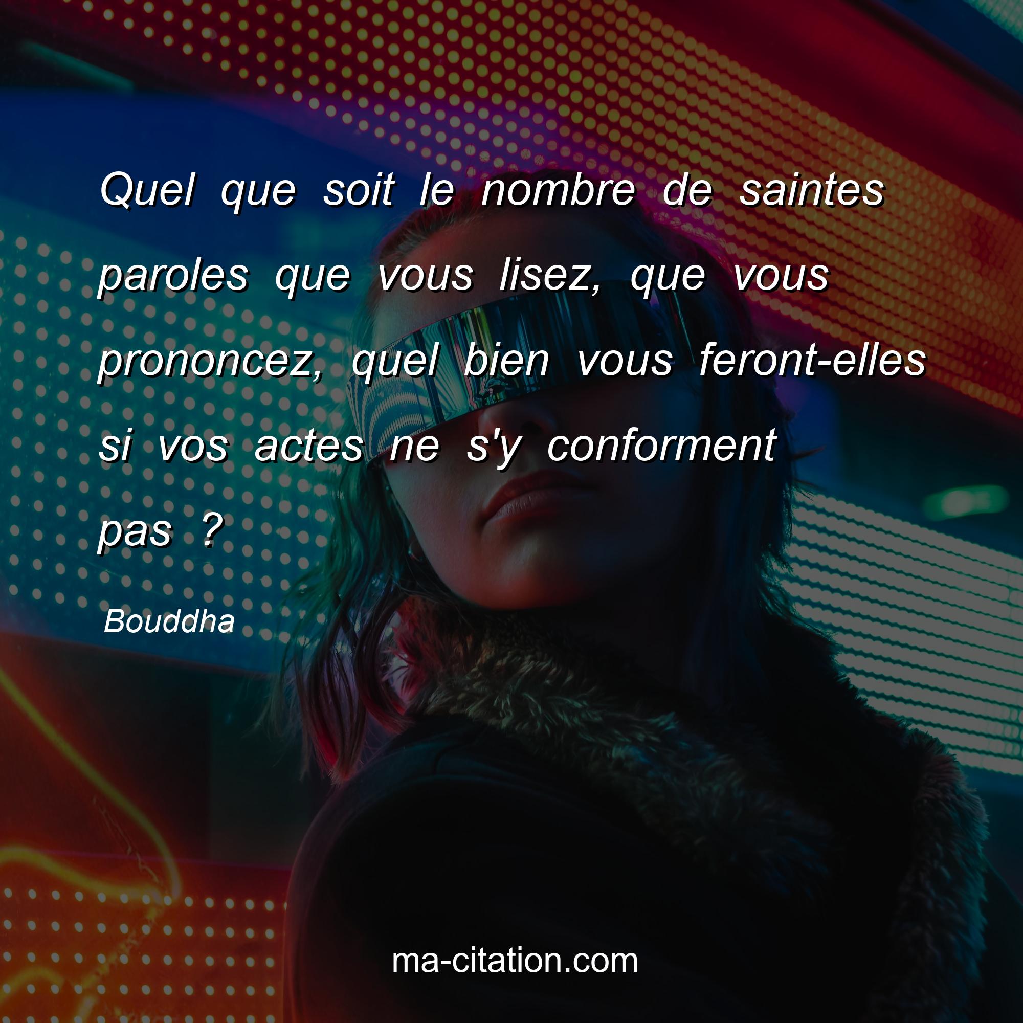 Bouddha est l'auteur de la citation sur la vie "Quel que soit le nombre de saintes paroles que vous lisez, que vous prononcez, quel bien vous feront-elles si vos actes ne s'y conforment pas ?".