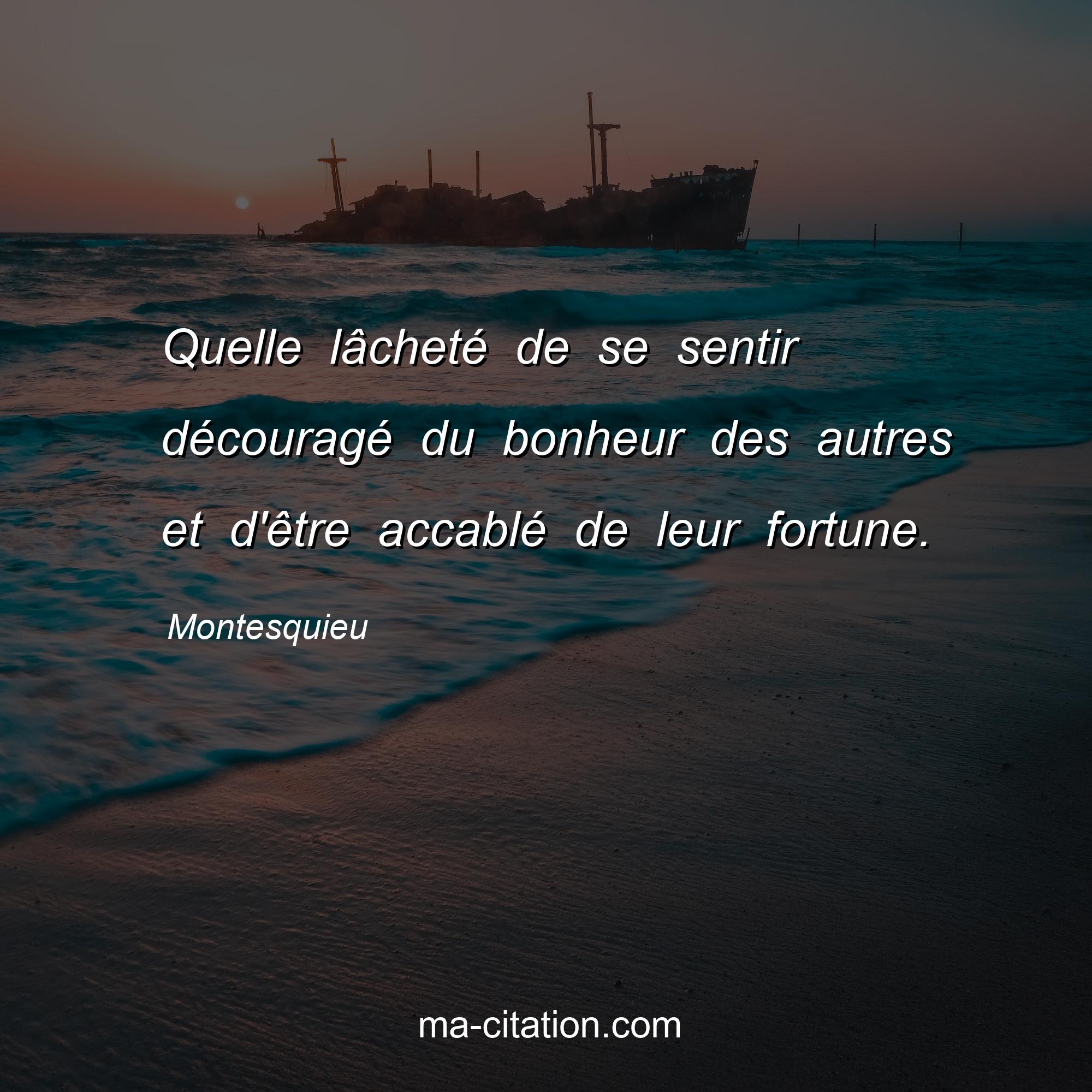 Citation sur la vie de Montesquieu :Quelle lâcheté de se sentir découragé du bonheur des autres et d'être accablé de leur fortune.