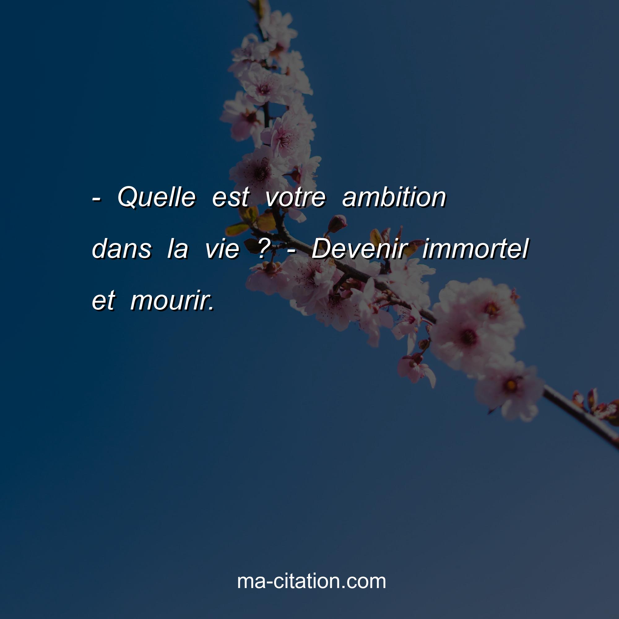 Citation sur la vie :- Quelle est votre ambition dans la vie ? - Devenir immortel et mourir.