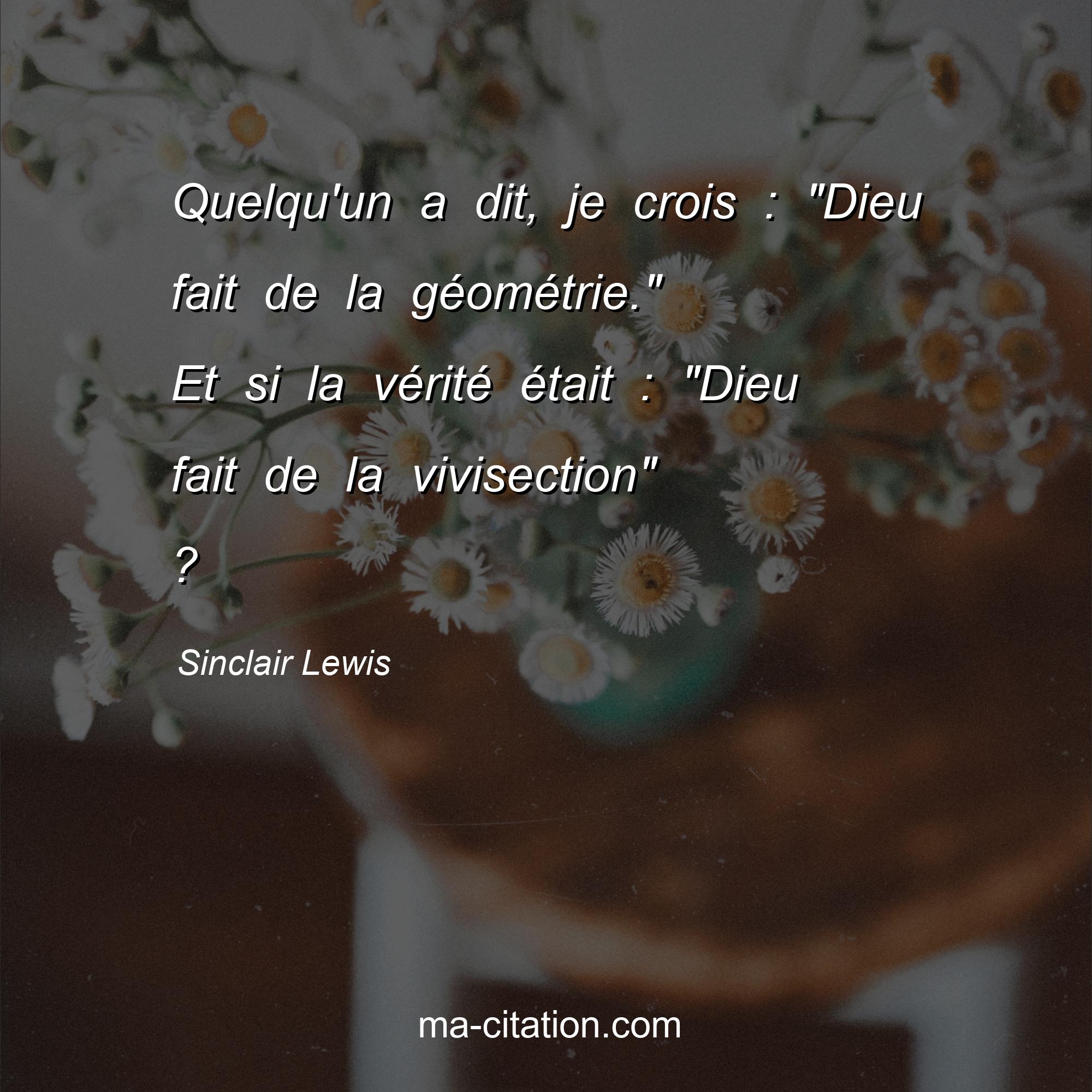 Citation sur la vie de Sinclair Lewis :Quelqu'un a dit, je crois : "Dieu fait de la géométrie." Et si la vérité était : "Dieu fait de la vivisection" ?