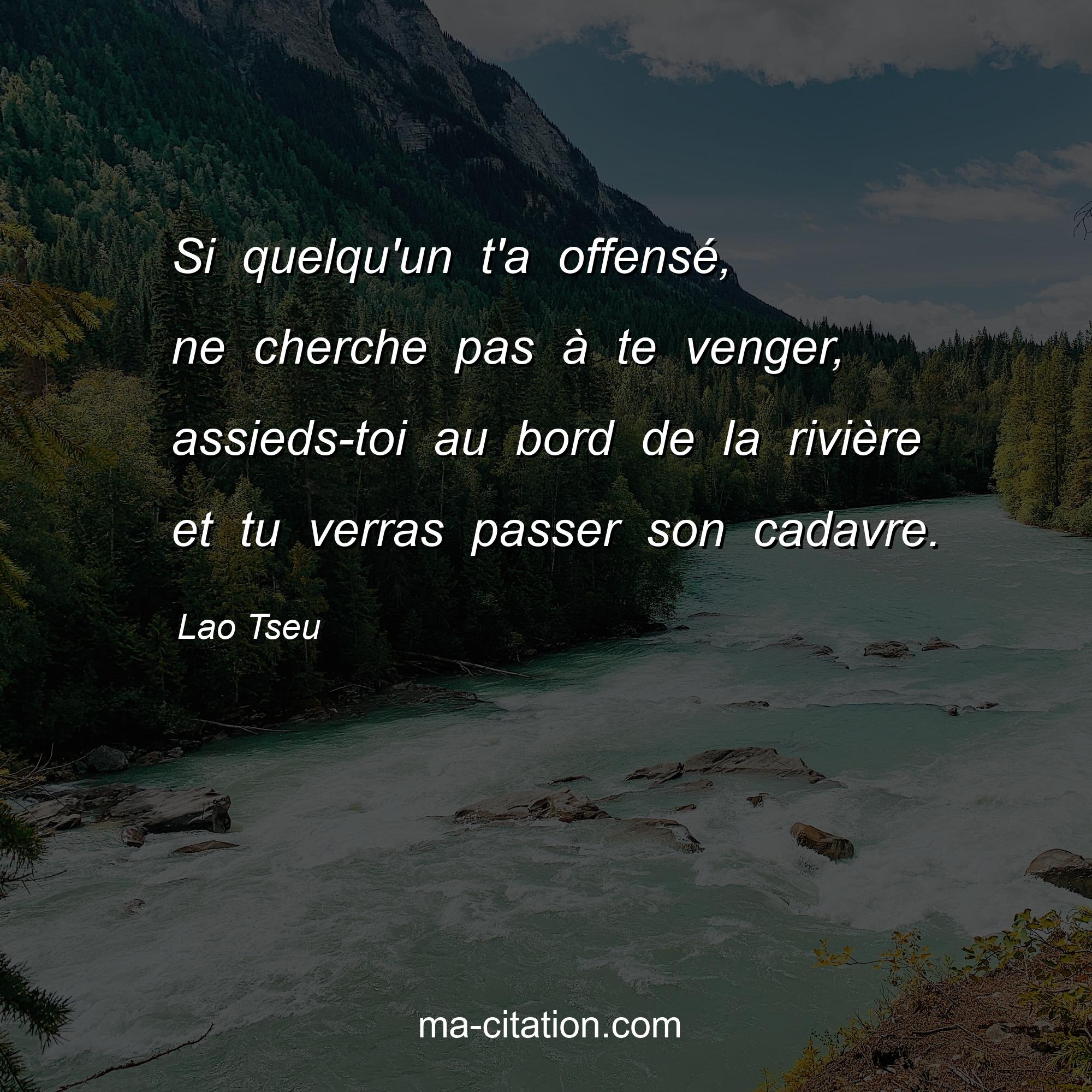 Citation sur la vie de Lao Tseu :Si quelqu'un t'a offensé, ne cherche pas à te venger, assieds-toi au bord de la rivière et tu verras passer son cadavre.