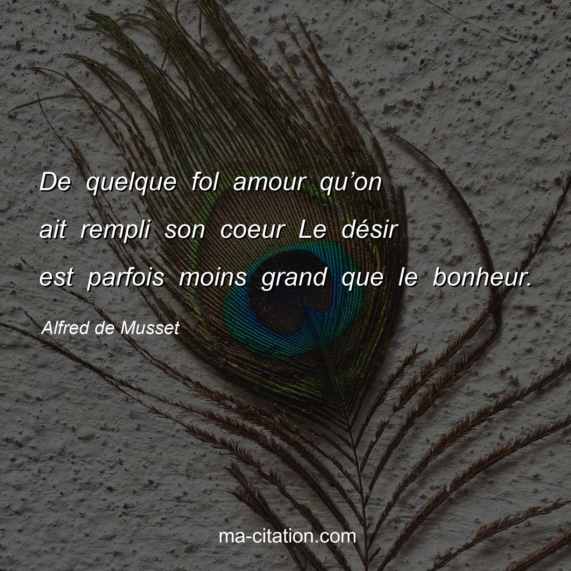 Citation sur la vie d'Alfred de Musset :De quelque fol amour qu’on ait rempli son coeur Le désir est parfois moins grand que le bonheur.