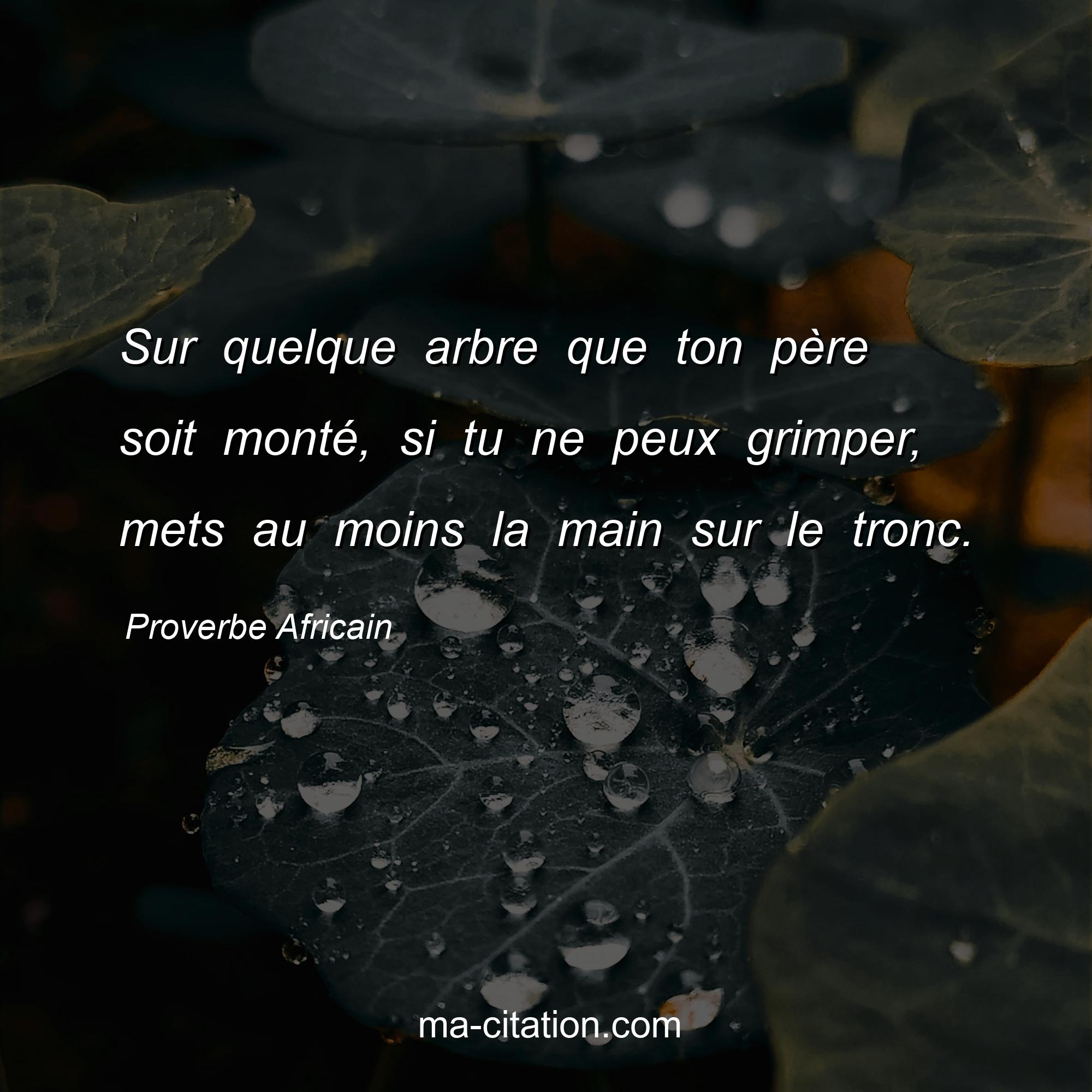 Proverbe Africain sur la vie :Sur quelque arbre que ton père soit monté, si tu ne peux grimper, mets au moins la main sur le tronc.
