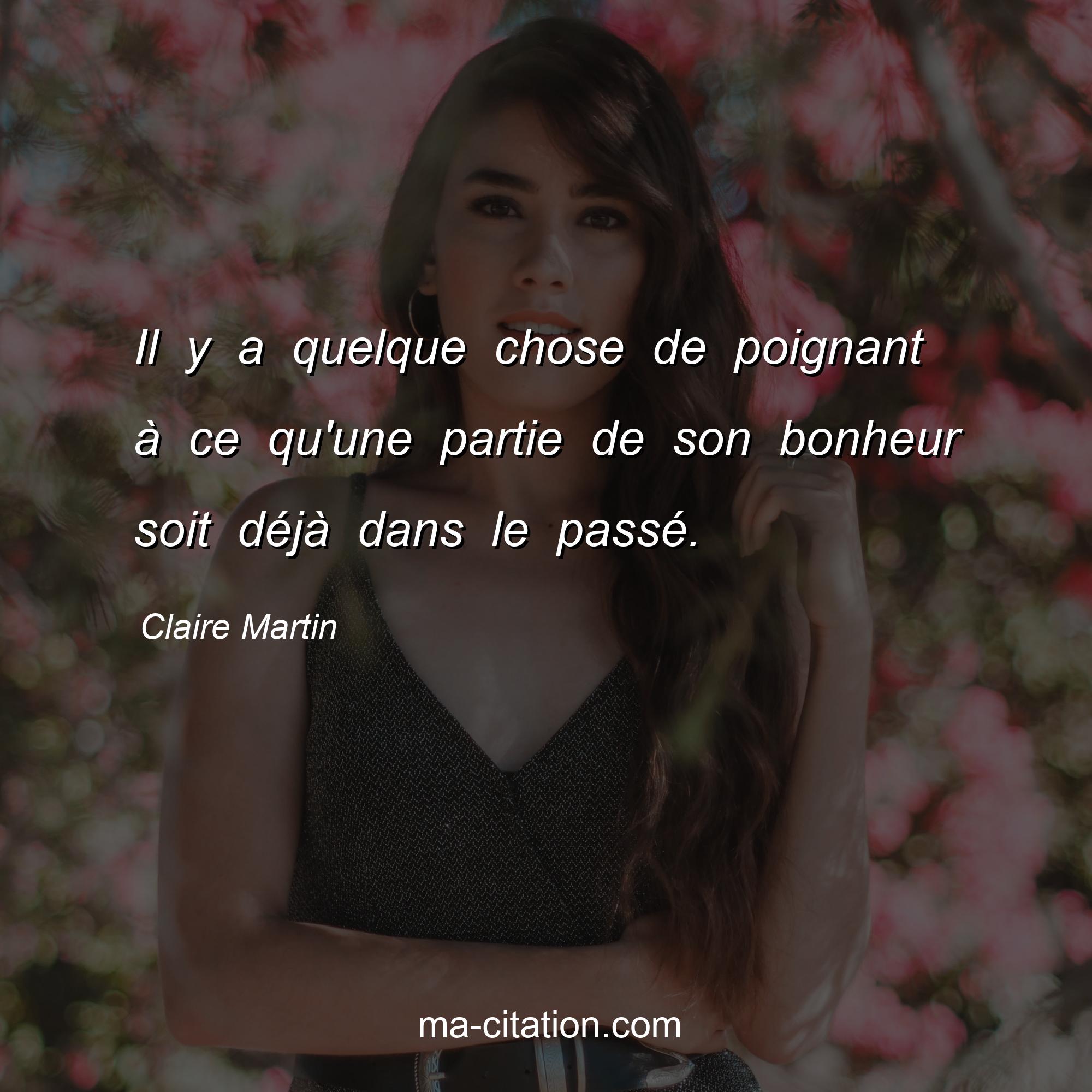 Citation sur la vie de Claire Martin :Il y a quelque chose de poignant à ce qu'une partie de son bonheur soit déjà dans le passé.