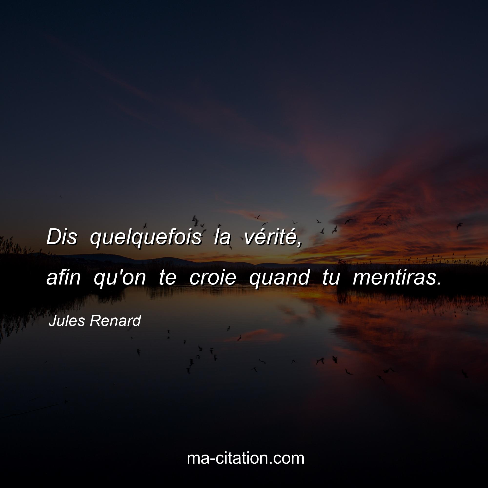 Citation sur la vie de Jules Renard :Dis quelquefois la vérité, afin qu'on te croie quand tu mentiras.
