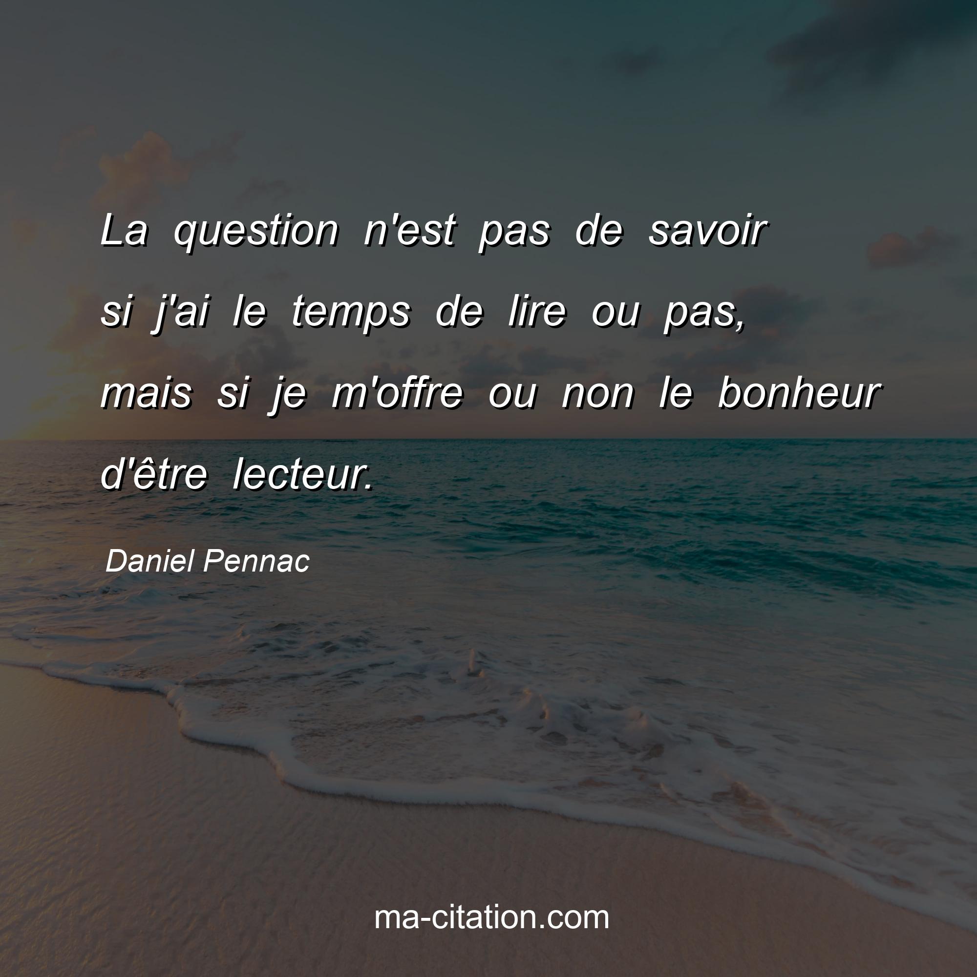 Daniel Pennac est l'auteur de la citation sur la vie "La question n'est pas de savoir si j'ai le temps de lire ou pas, mais si je m'offre ou non le bonheur d'être lecteur.".