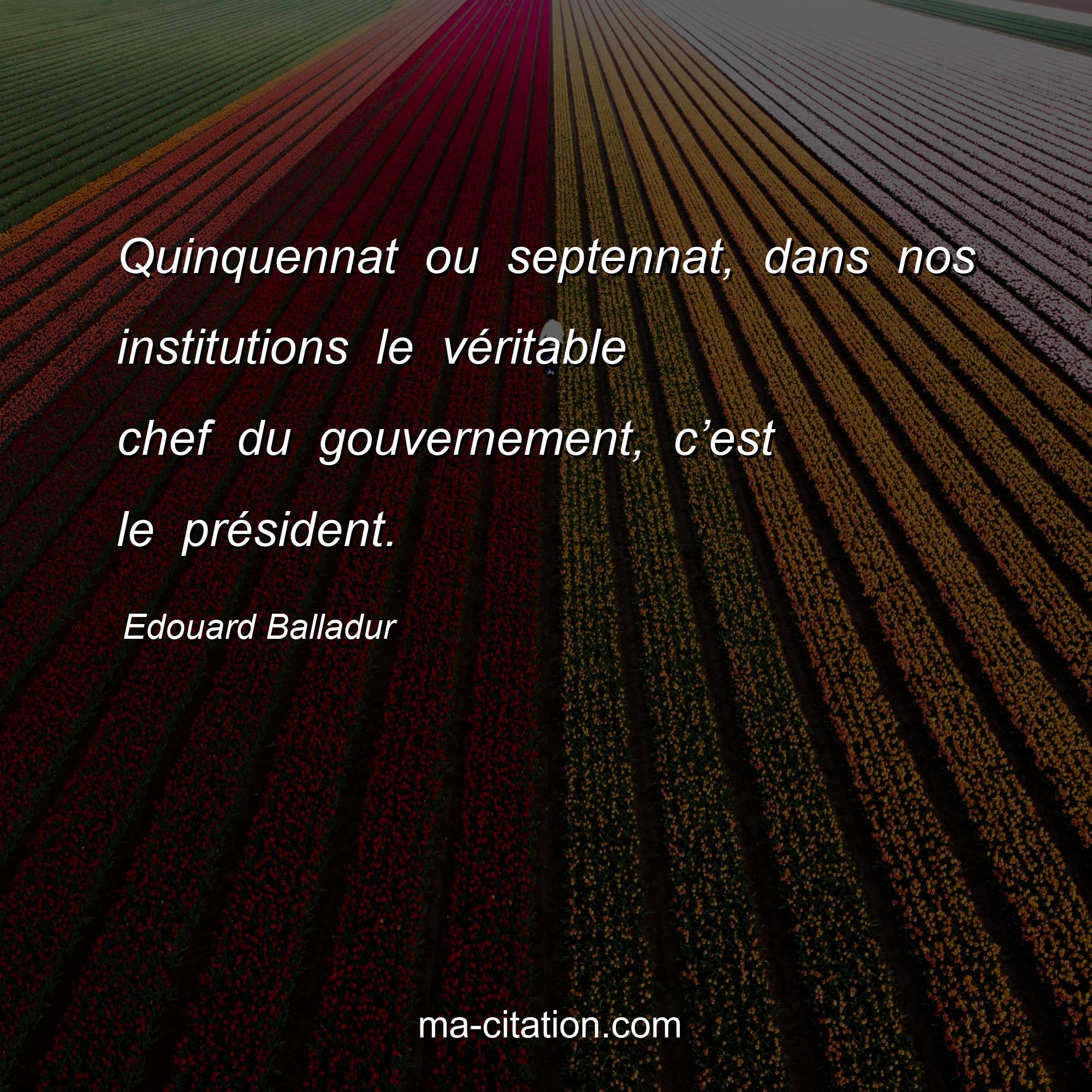 Citation sur la vie d'Edouard Balladur :Quinquennat ou septennat, dans nos institutions le véritable chef du gouvernement, c’est le président.