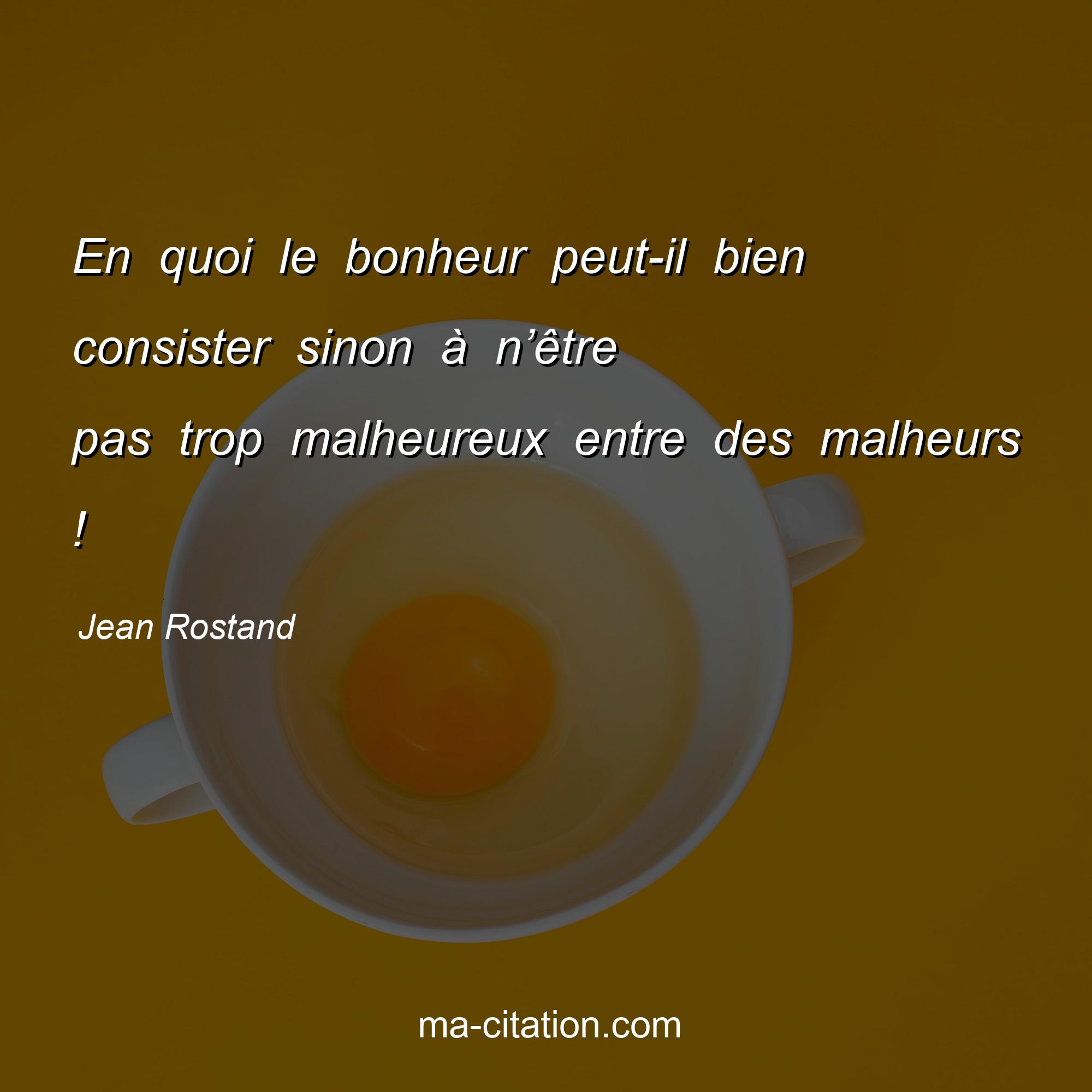 Citation sur la vie de Jean Rostand :En quoi le bonheur peut-il bien consister sinon à n’être pas trop malheureux entre des malheurs !